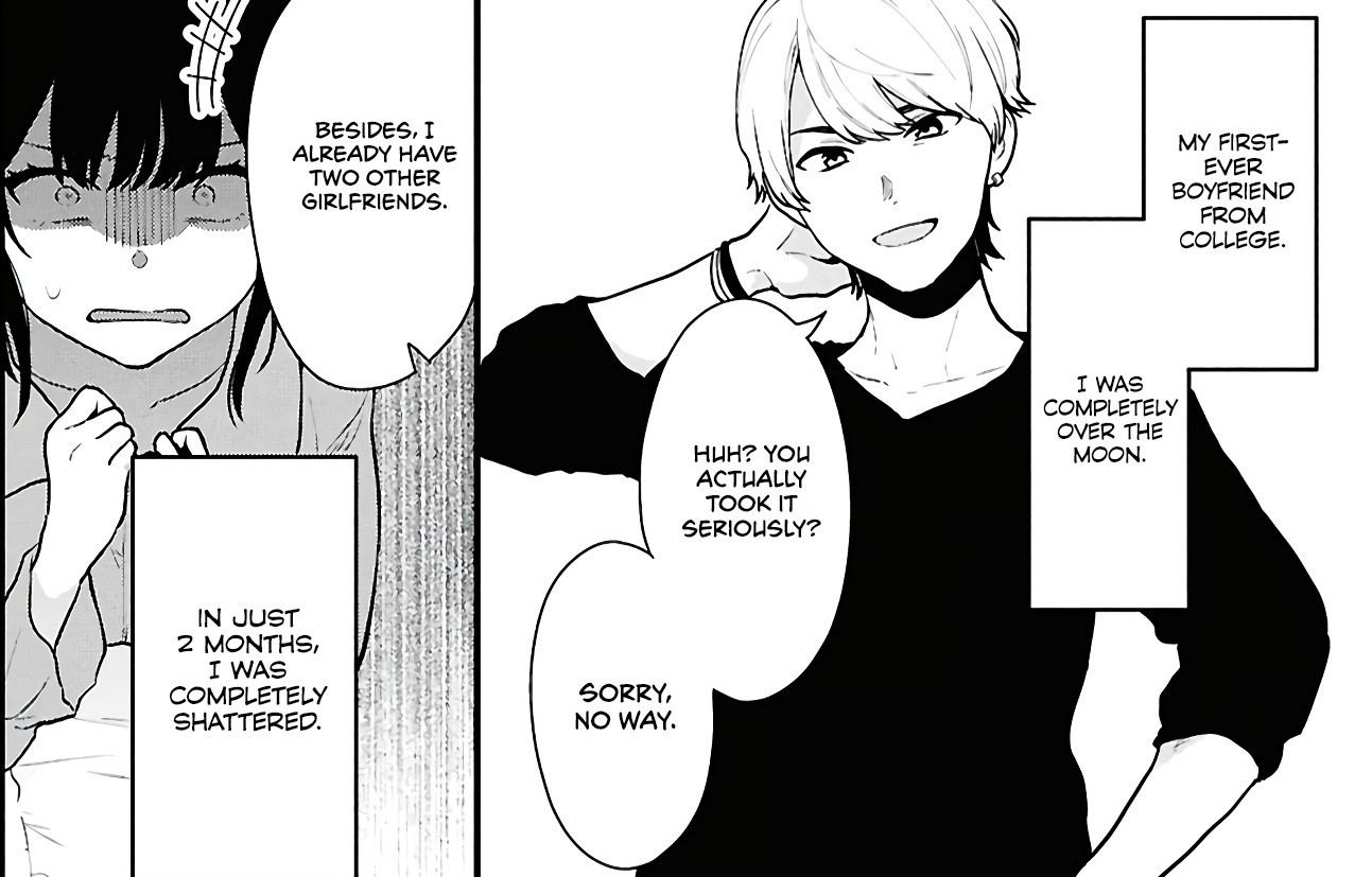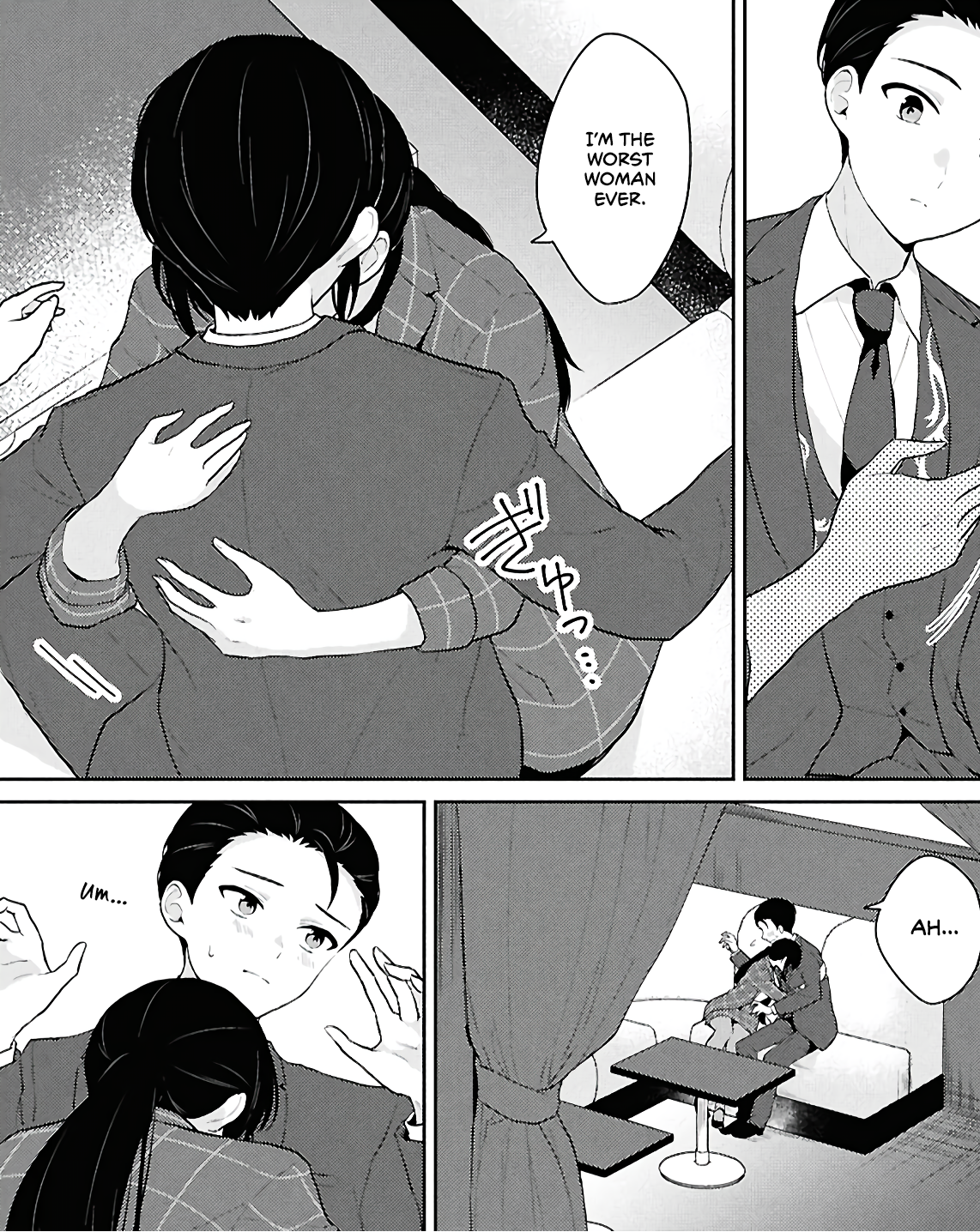 Another scene from the manga i find weird is this one. Look how unconfortable Masato looks when the OL hugs him. Not a reaction you would expect from a host.