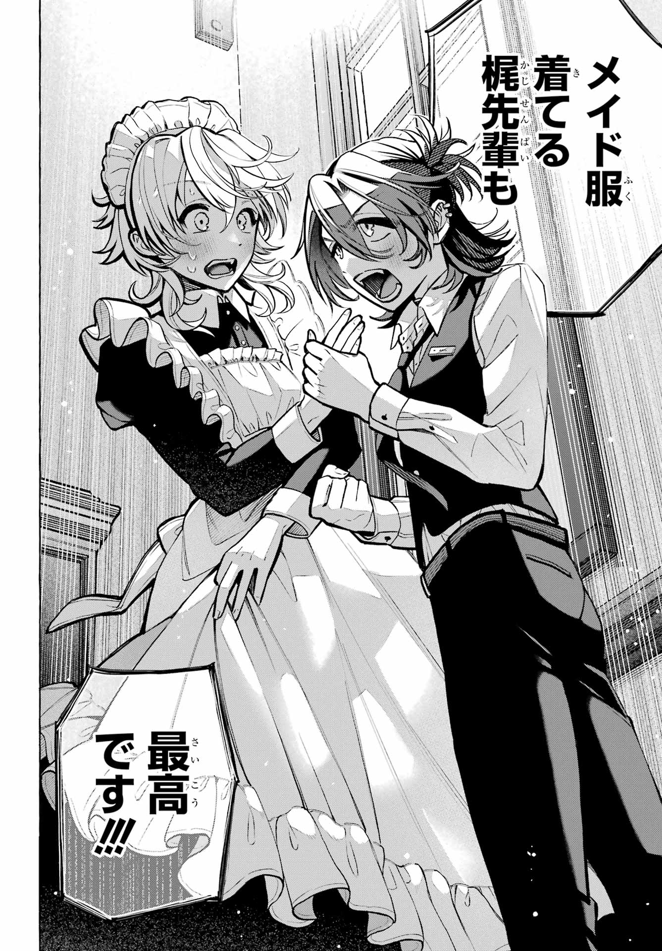 + 僕は+ Personally,+ メイド服着てる梶くん+ 好き+ I like how Kaji-kun looks wearing a maid uniform.