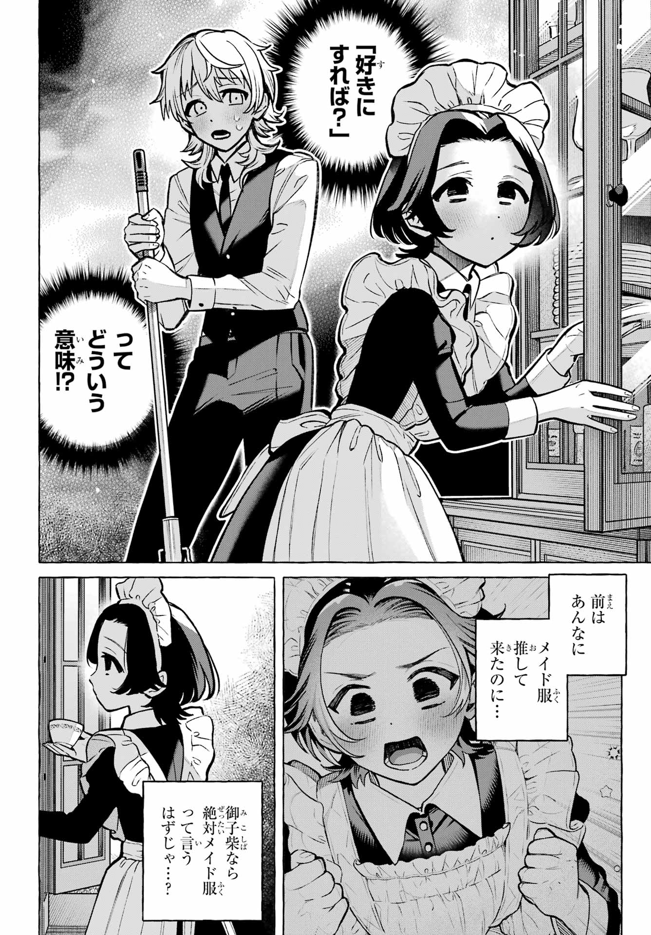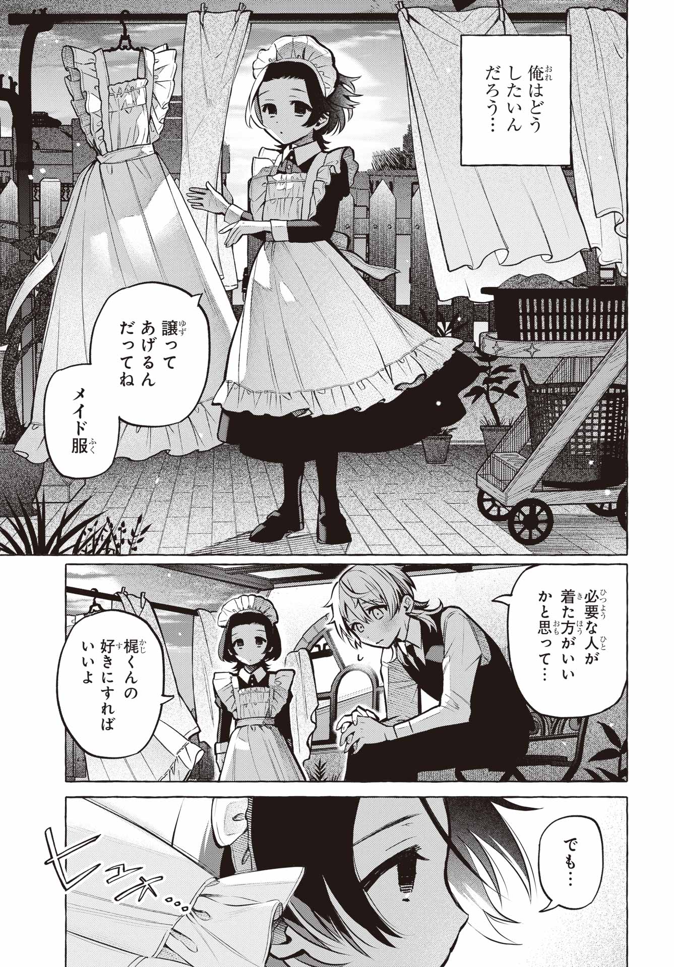 > 由紀円香 (ゆき まどか) + YukiMadoka> 男の子もメイド服かわいくなっていいですか?+ Can boys look cute in maid dresses too?> 第2話これからもメイド服でかわいくなっていいですか?+ Chapter 2: Is it okay if I keep wearing maid outfits to be cute?> クラスメイトは、メイド服が似合う男の子。優美な筆致で描かれる「ぼくら」の青春。His classmate is a boy that looks good wearing a maid uniform. The elegantly drawn story of 「Our」 youth's springtime.