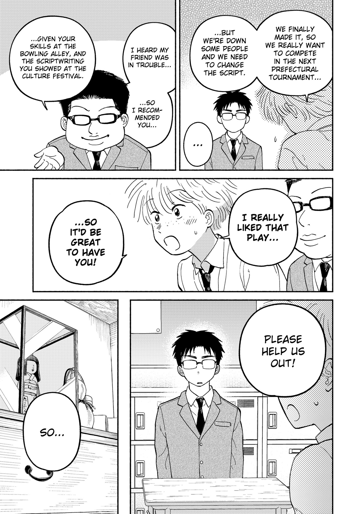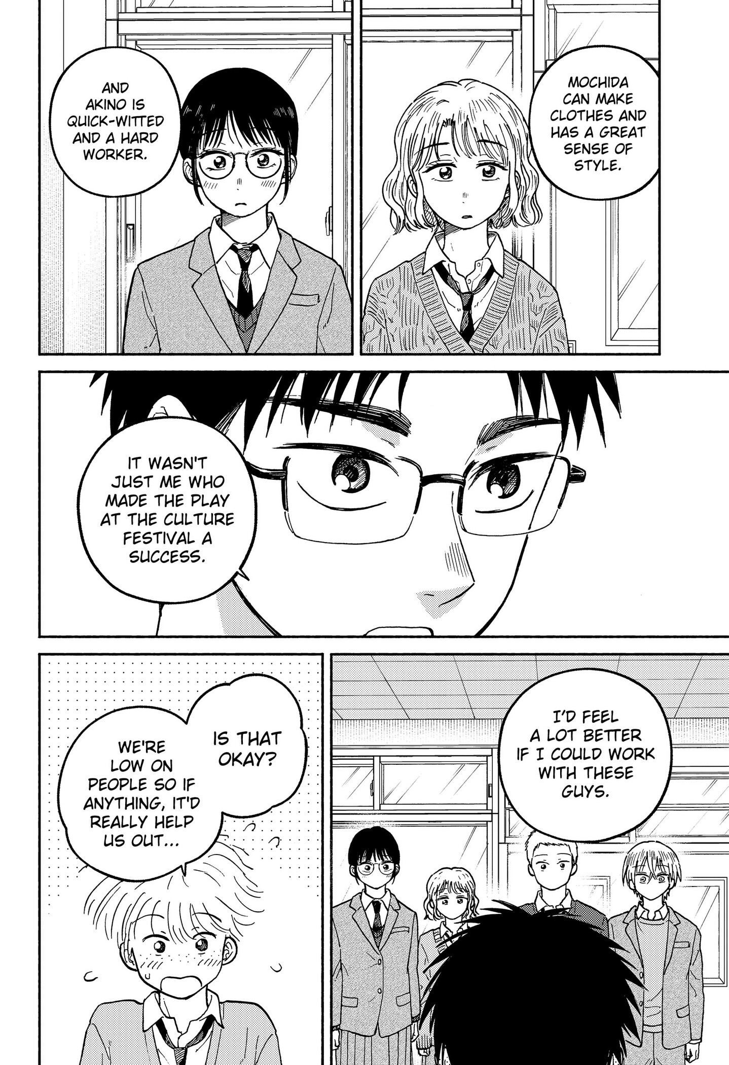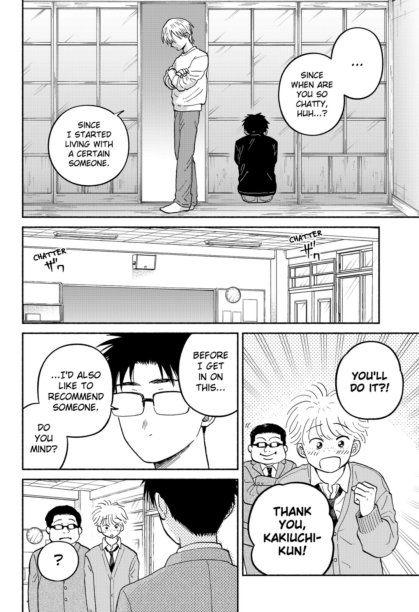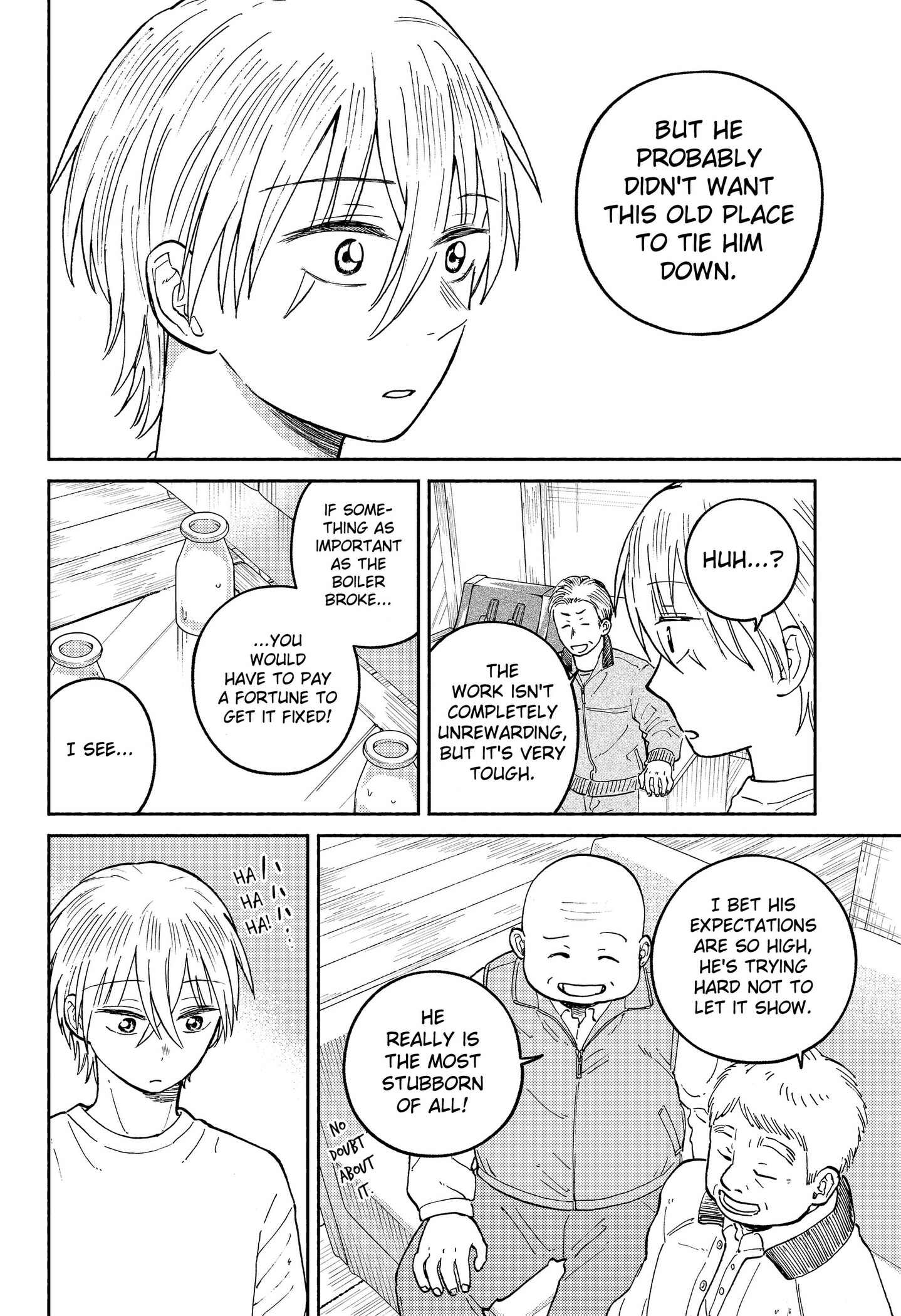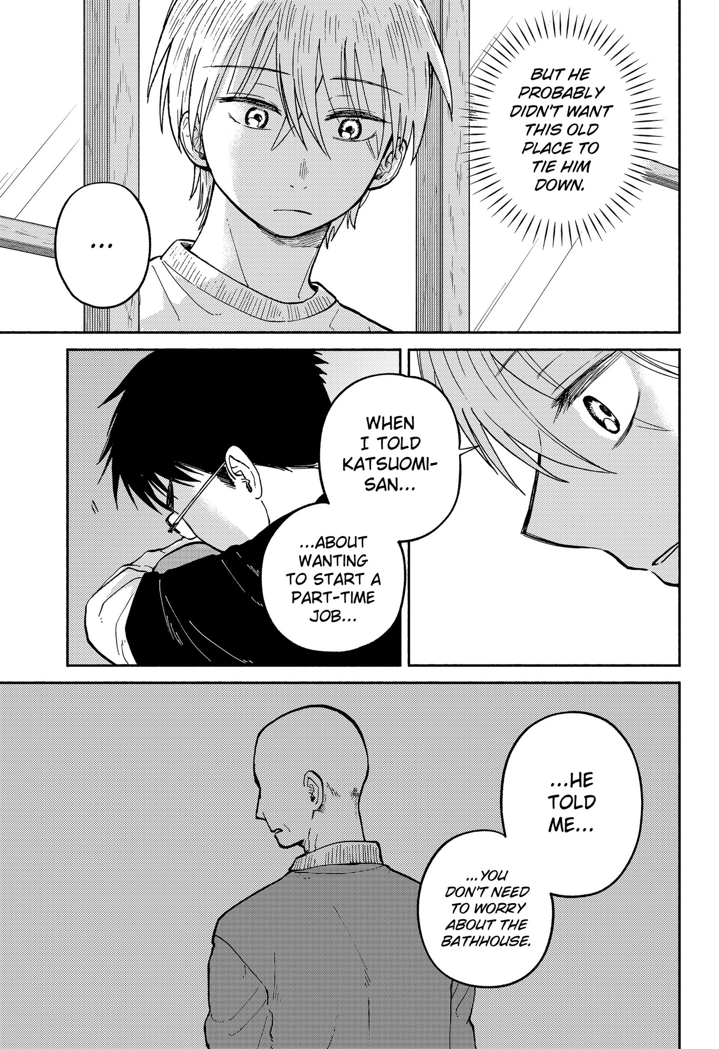 I get it, and that's definitely the mangaka's goal. It's very low-stakes and focused on addressing the character's issues and generally tries to resolve them not long after. So you know the lows are coming, but also know they're not gonna keep anyone down for too long because someone's gonna reach out to them.