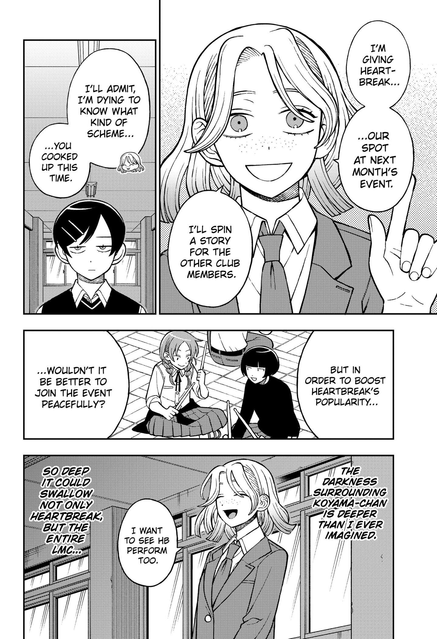 >>287706886I love this mango, I hope many more people will like it too and then it'll get an anime, tho that's doubtful because of all the copyrighted music.>>287707664Yuki was in Sound Sleep with Momo and Maika before the latter two had a falling out due to romance and that band broke up, and after that Momo joined Heartbreak. A while back, in chapter 49, Yuki even tried to get the two of them to make up, but it didn't work. You can check it out here https://cubari.moe/read/gist/cmF3L1RlcnJlbm9uL2dtcl9yZXBvL21haW4vZ21yX2luZGV4Lmpzb24/
