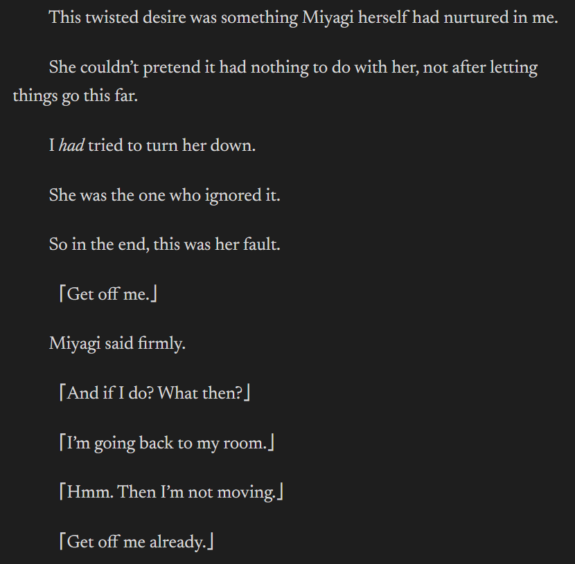 >>287726696This whole character is weird as fuck and if I felt this was a super well written story I would say that it's intentionally being done to make us as confused as Saki and trying to muddy her memories and intentions.