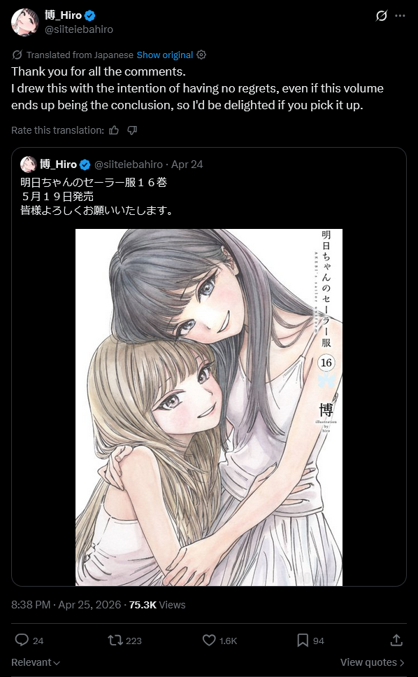 https://x.com/yuriTVT18/status/2048030342578389241Kitanai Doujin bombed so hard that their quitting the fanbase... Manio-sisters... not like this...