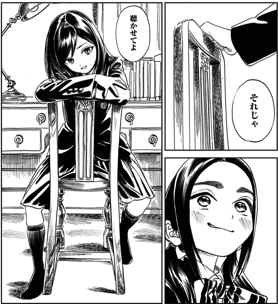>>287726696>>287726731I might be reading too much into it, but it felt like her eyes turned from black blobs into actual eyes when she apologises and Saki gets less terrified off her. It seems like it was just Saki projecting bad intentions unto her and not payong attention to the actual Mahiro (hence the eyes).