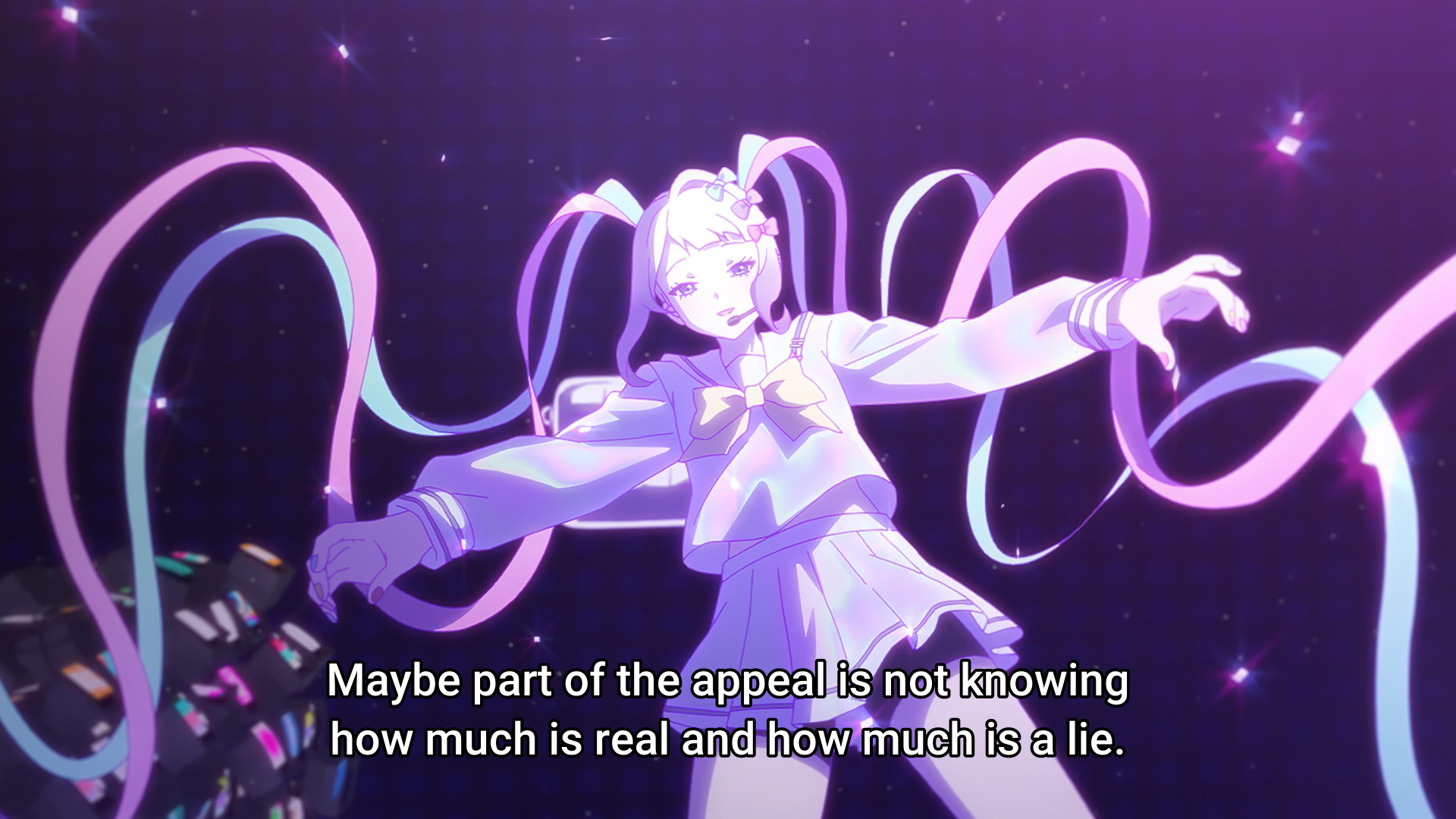 >>287738523This. Rather than putting on a mask to be an idol, she's shedding her mask to become one.
