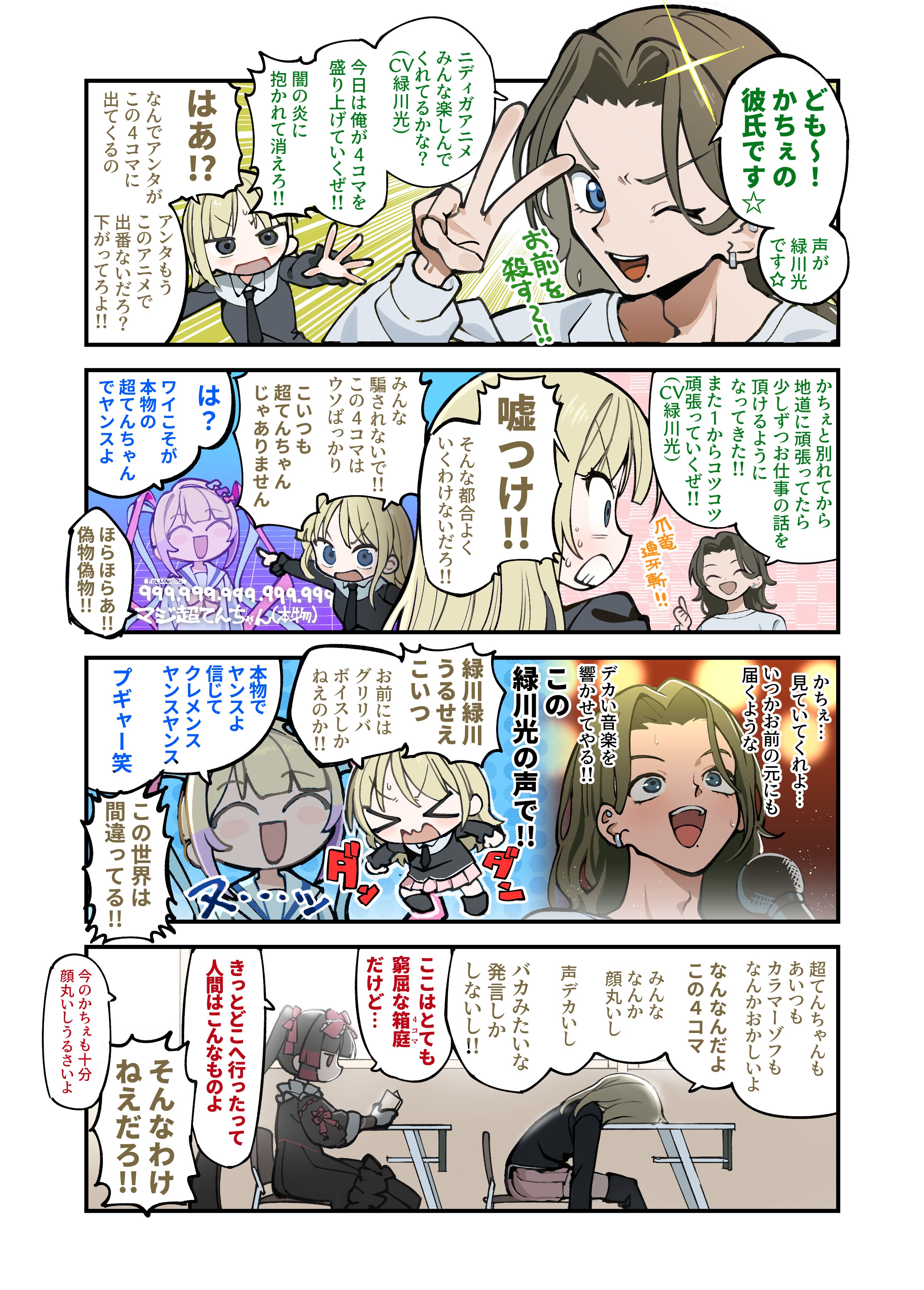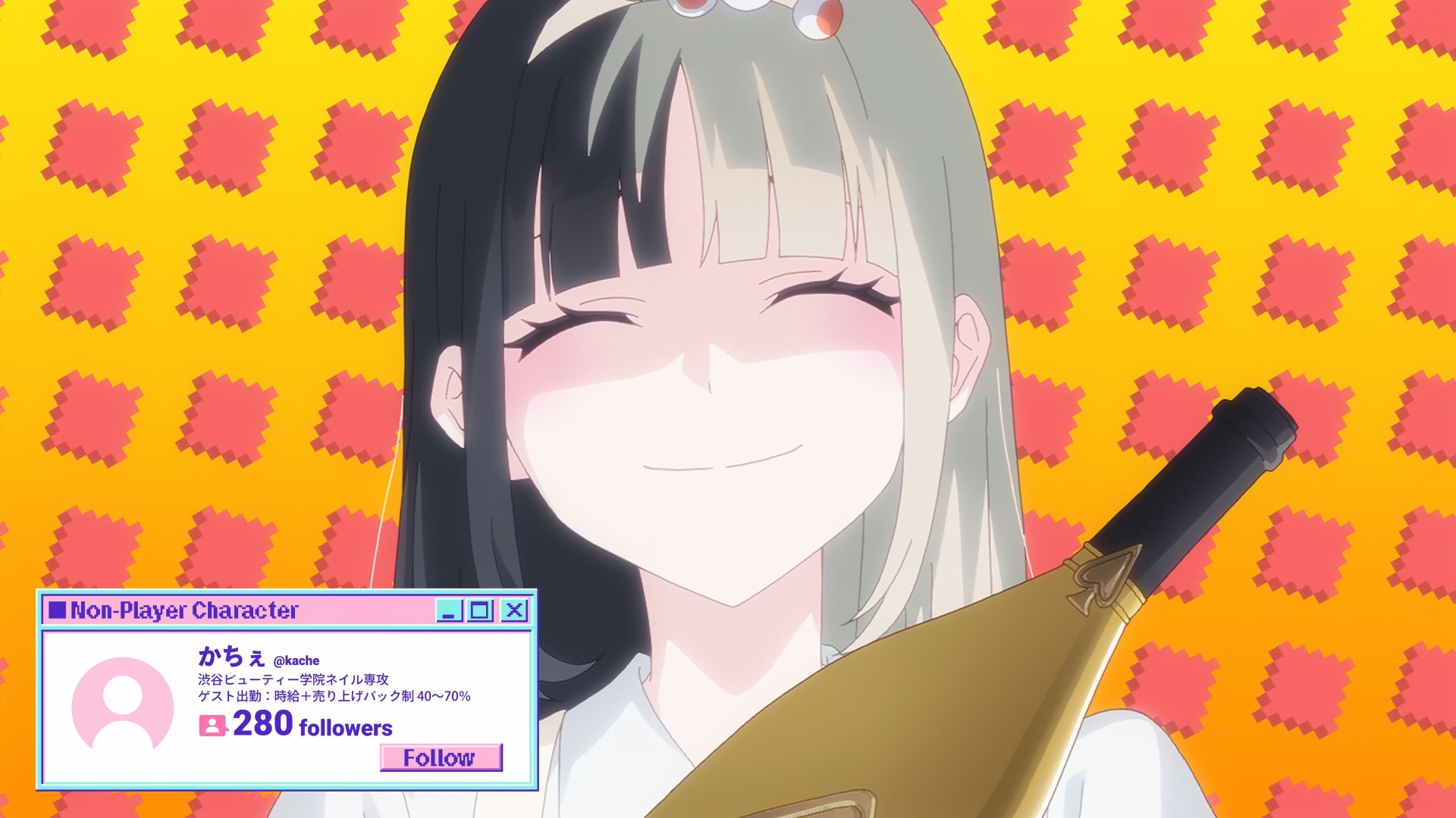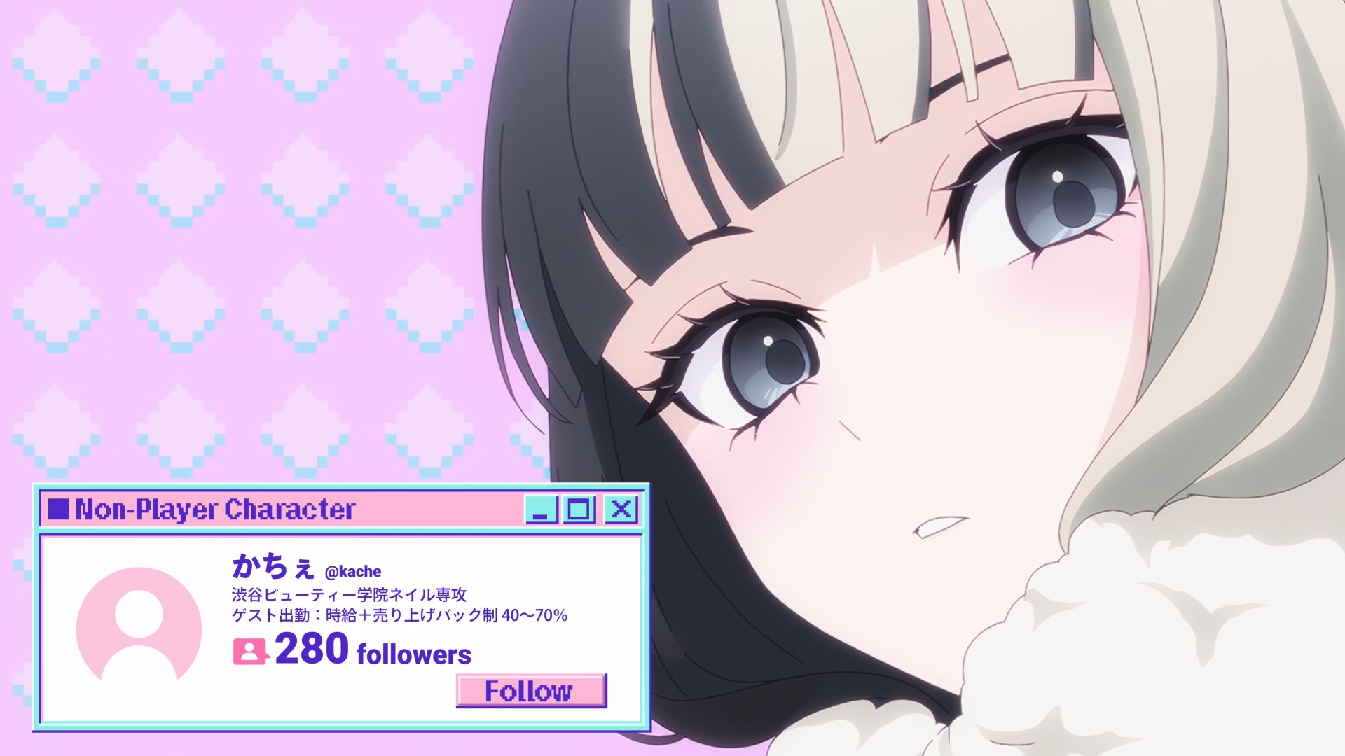 >>287737957I wouldn't say black-haired Kache is particularly "real"- she literally becomes a faceless NPC at one point. Rather than a facade, she's constructing her own identity instead of being swept around by everyone around her and going with the flow. At first she was unwilling to fully commit to it and only dyed half of her hair- she wanted to express her individuality but chose a half measure. Going fully blonde represents her self-actualization and her refusal to live subject to the whims of others. She's being set up as a foil to Ame/KAngel, so I don't see her spiralling into self-hatred and menhera outbreaks since we already have Ame herself to explore that angle.