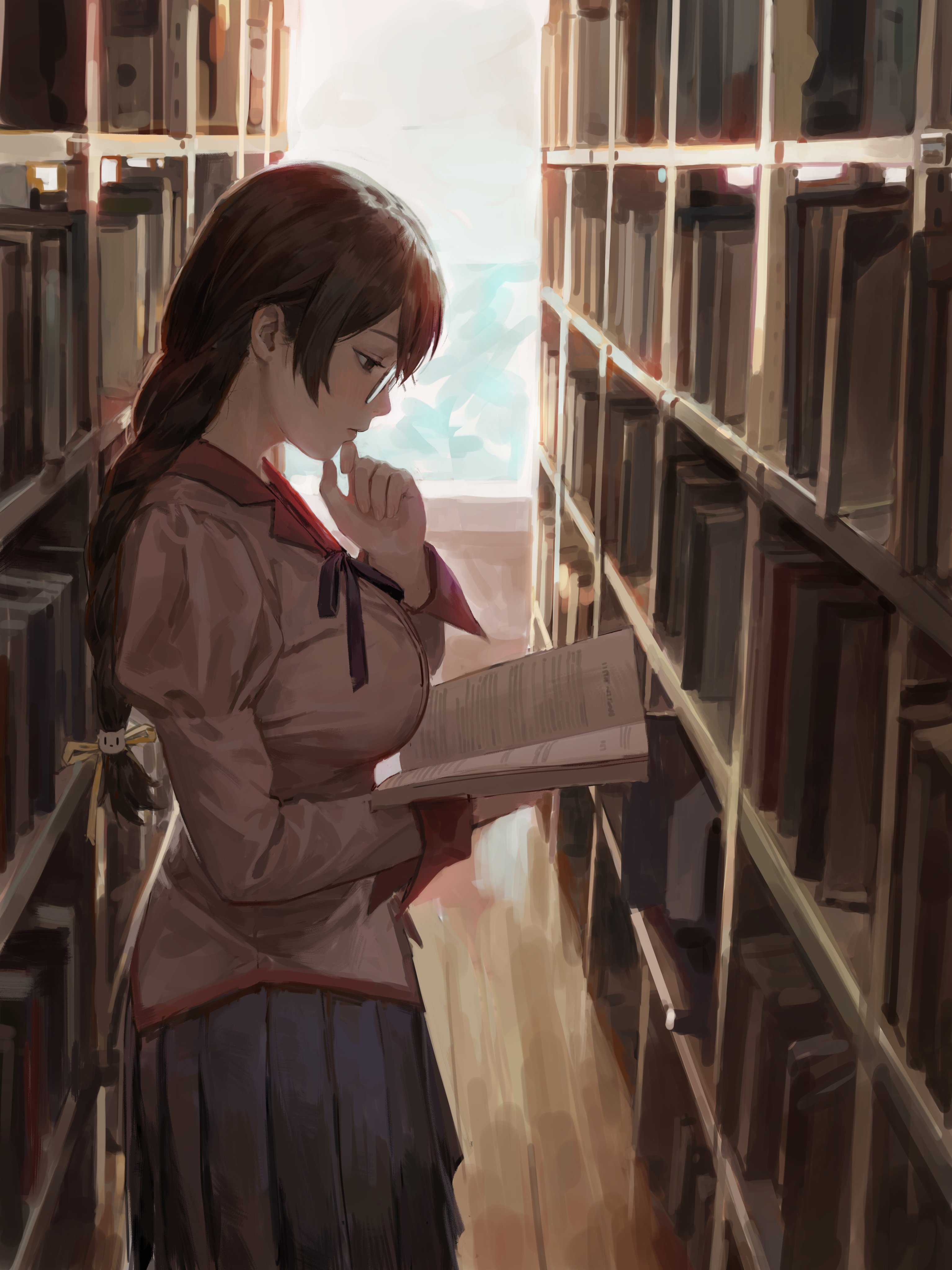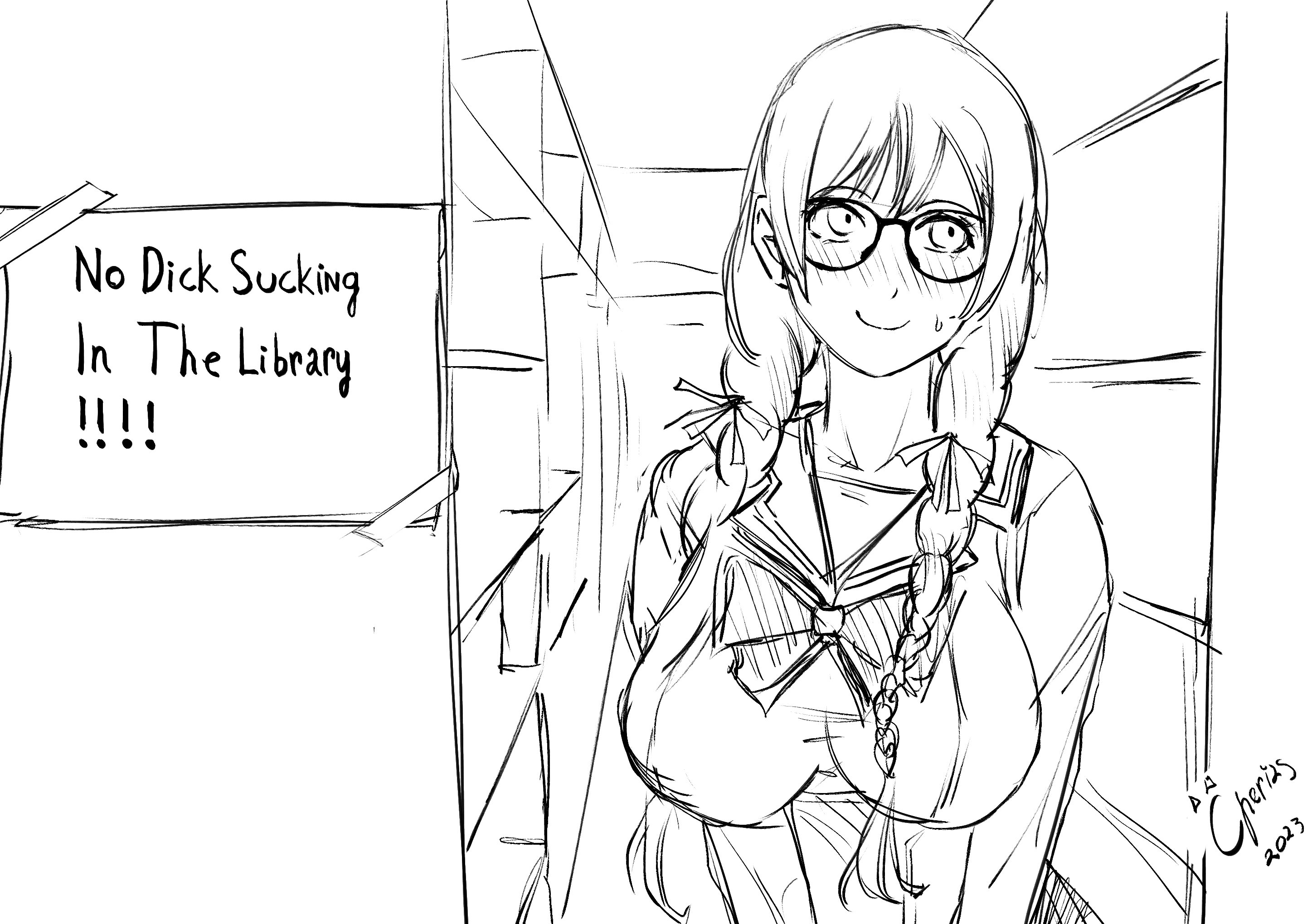 Bitch can barely see the book with her fat tits in the way.