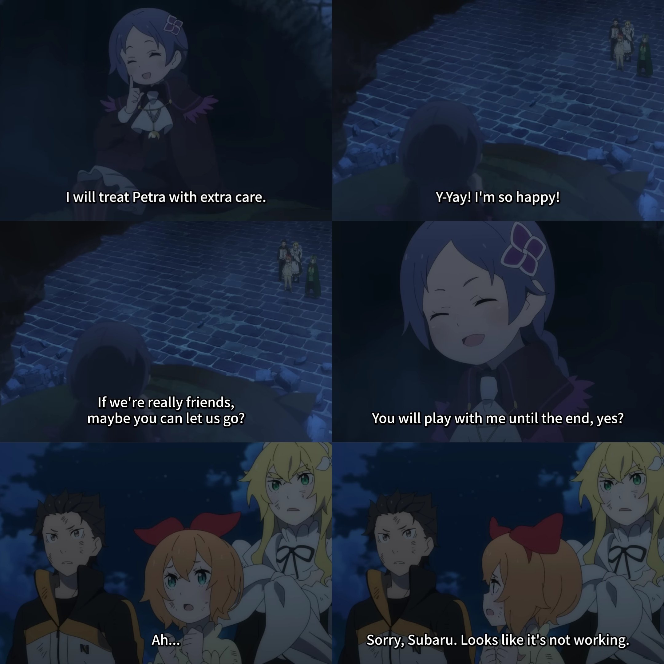 >Subaru: “Going by your logic, I’m also several hundreds of years old? I’ve lived a time way too shocking between leaving the convenience store and waking up in the morning……”