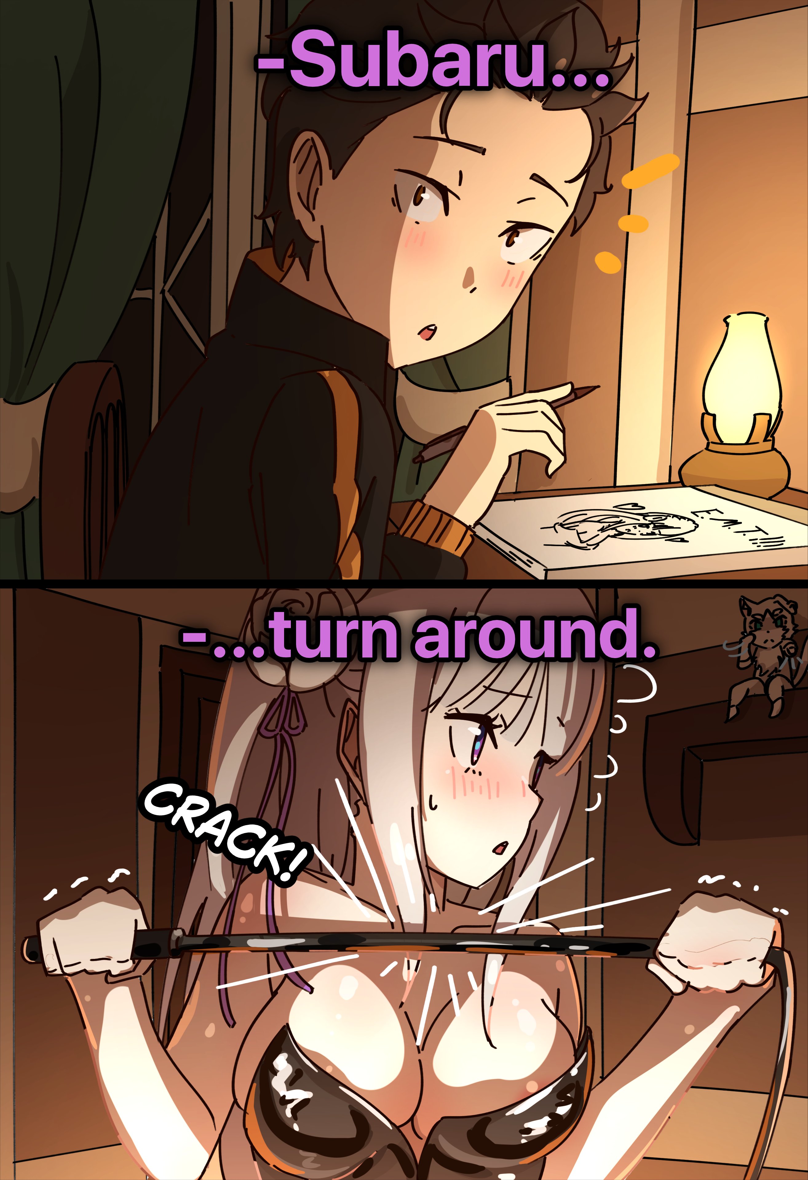 >Subaru: “ーーLet’s see, you tiny damn sexologist ~hk!”