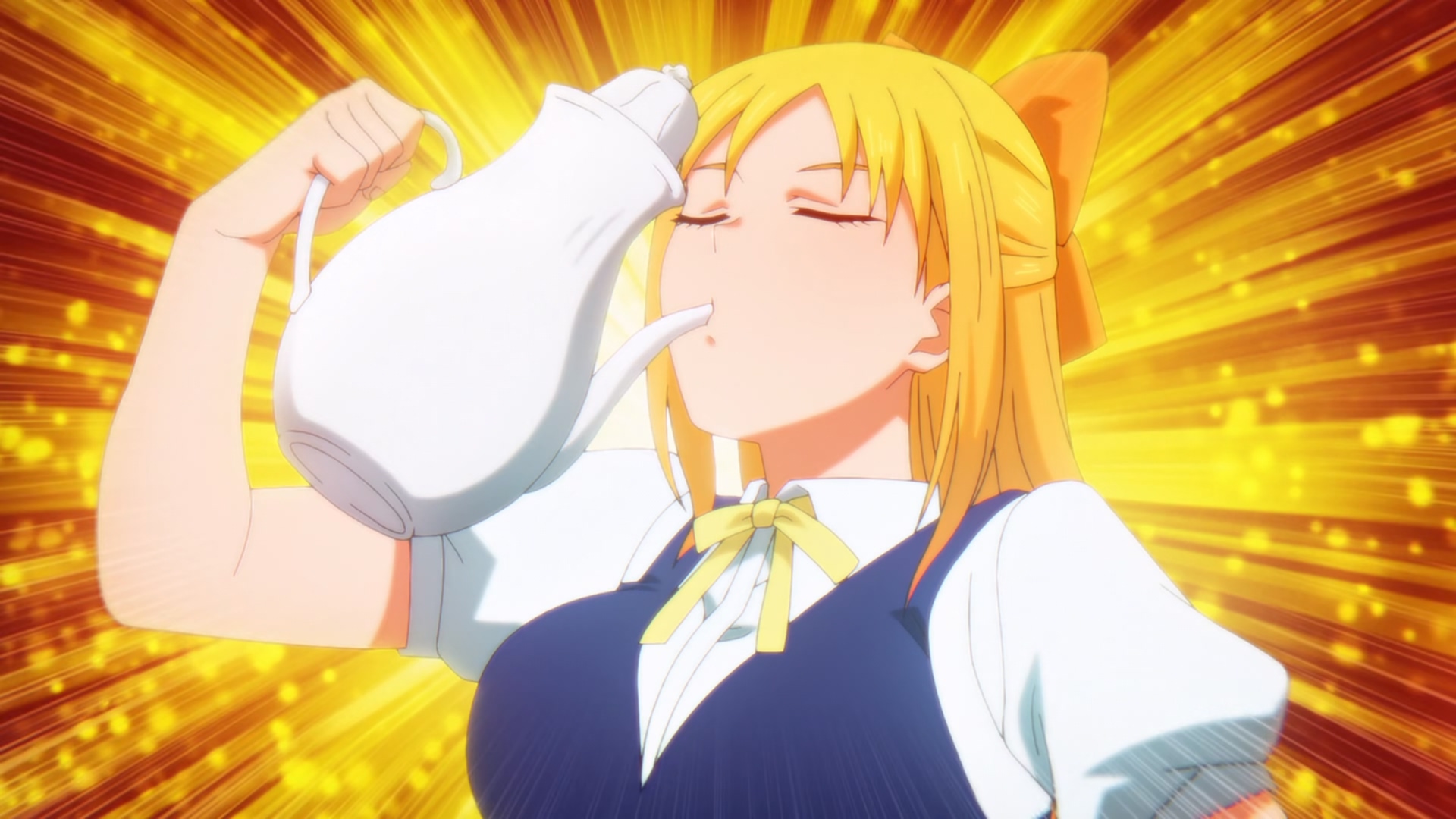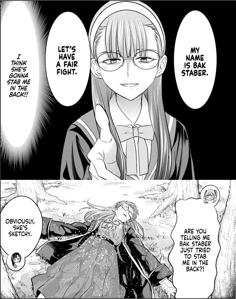 >>287718527>Spica is worried that Claude will always see her as a student and not as an equal, so she has to step up and excel>She finds out about a magic herbal tea recipe to boost smarts and chugs three cups before class>Cut to middle of class where she realizes she fucked up and has to pee too badly to concentrate>Class ends but Claude calls a few students to help him with an errand, dragging Spica in. Of course, she's too embarrassed to refuse>They have to service some magic device in a storage room, but the other students all flex their eccentricities and complain and cause delays, each with a separate reason they don't want to be there, making Spica more and more impatient>Claude internally muses he brought Spica along to help keep the group stable but for some reason even she seems reserved and distant from him today>Aria catches on to the problem but just teases Spica more with big shows of water magic while she suffers>Finally they finish and they all rush off, leaving Claude to clean up>Spica hurries to relief but on the way she connects a few innocuous magic lore clues throughout the chapter>Realizes that they all forgot a pressure valve on the machine and it's gonna explode>She's sure it's not that urgent and weighs the chance of danger against her immediate personal needs>Cut to Claude about to leave, but suddenly the machine starts shaking behind him>Spica dives in and pushes Claude out of the way just before the explosion catches him, and seals the rest of the machine>Claude is genuinely impressed she spotted something he missed>But Spica's fallen over on him and can't get up, shaking and at her limit>Ends with a view of the room's window from the outside, with speech bubbles showing Spica bawling and Claude hastily trying to calm her downThere you go.