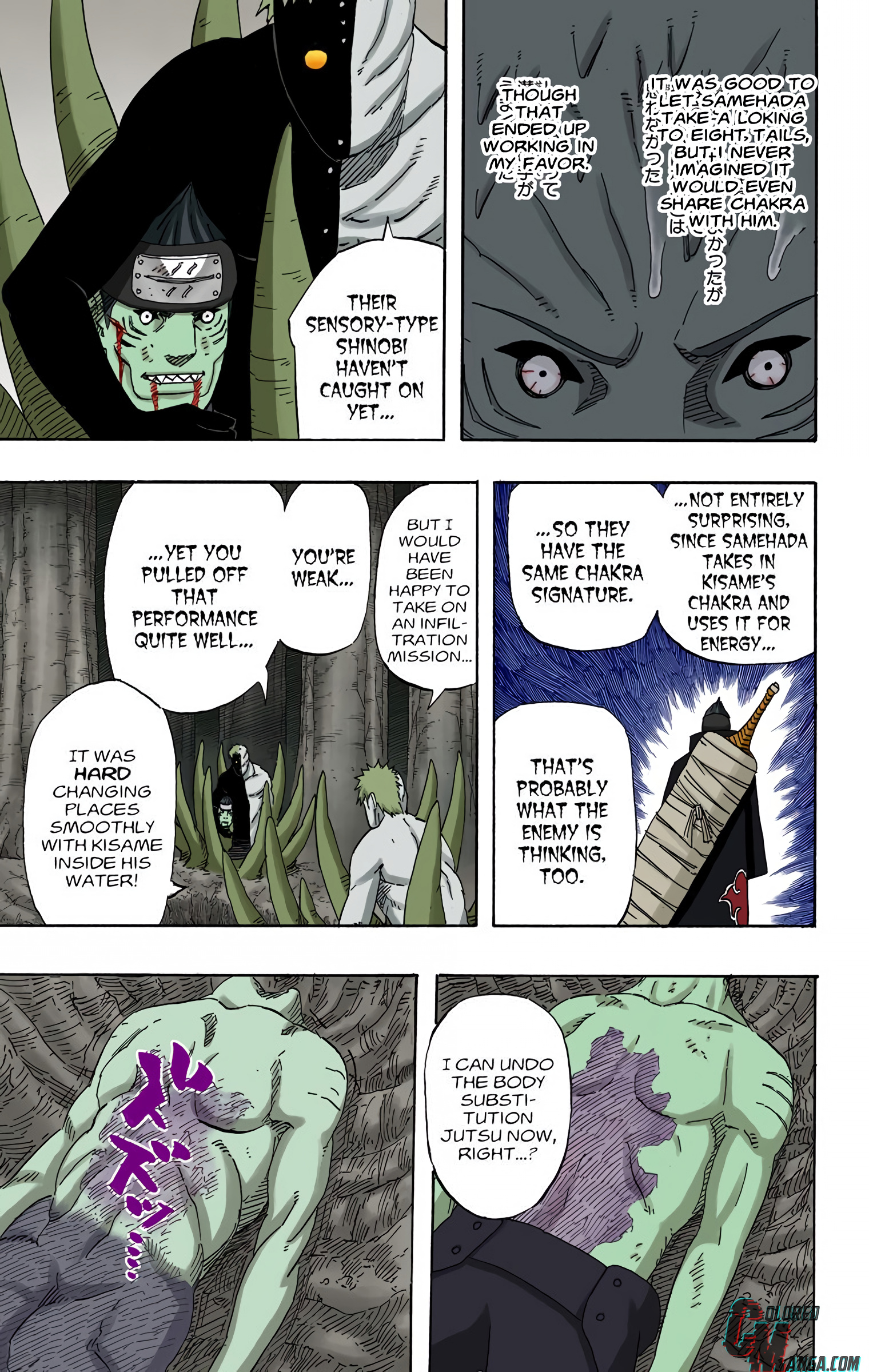 >>287719613>>287719632>>287719646>Zetsu switched with Kisame while in the water>the point of the battle where Kisame was winning decisively and was in 0 danger>no indication at that point either that Raikage+crew were in the area to spot them and act as backup...what? This is one of the most contrived situations ever. Kisame (Zetsu) had won. If no backup came was Kisame just going to let him win so he could infiltrate, how would he even do that convincingly? I swear the only reason this sequence doesn't get hated on as much as Great Snake Escape is that it lacks spectacle + doesn't involve Sasuke.