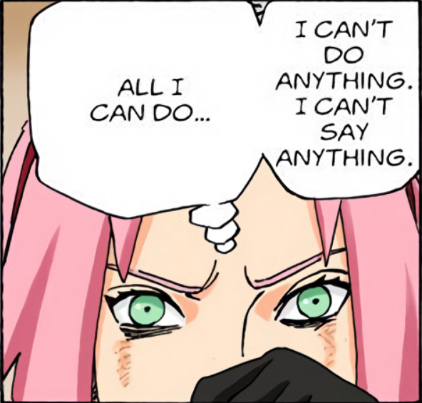 >>287719438It's been the same character arc with her since the freaking chunin exams. Why does Kishi hate women so much?Now Sakura's just given up.