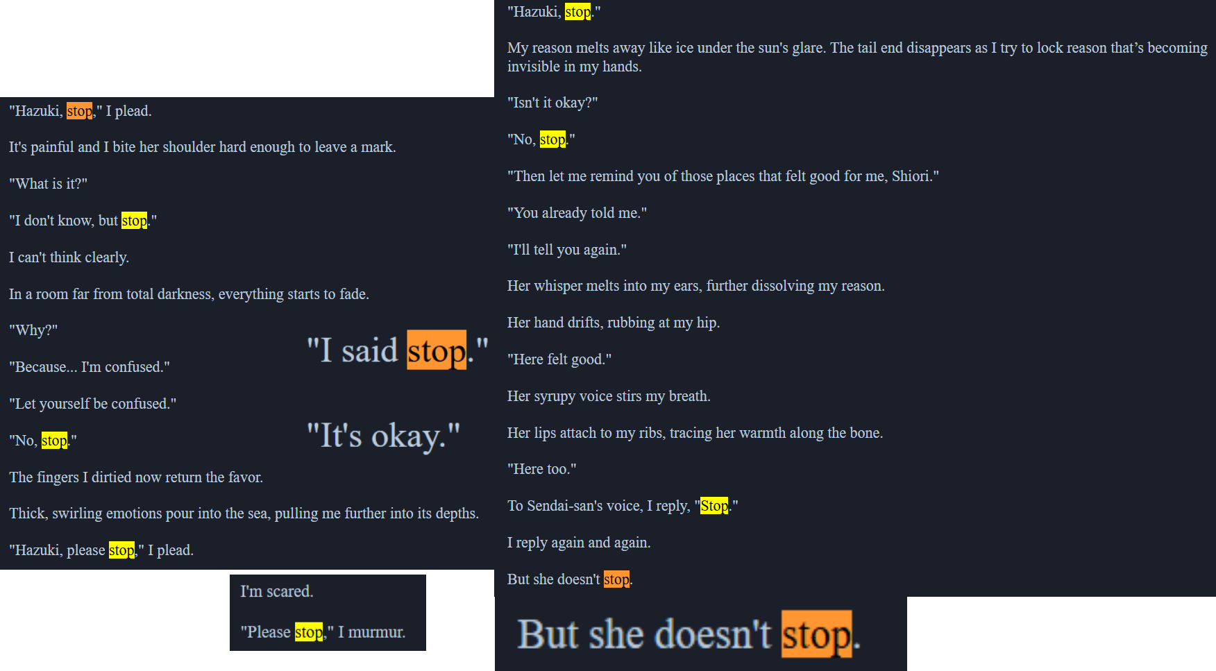 This is what happens when instead of stopping you believe there is a submissive way of saying stop