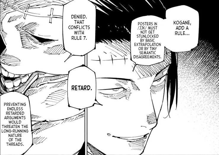 I will say thisA lot of hate surrounding Megumi is that a lot of people genuinely think Megumi himself wants to be>Surpassing Gojo (only gojo wants that for him)>To be the Zenin head clan (In the same arc where Maki killed them, Megumi himself said he doesn't give a crap about his zenin head status) >Taming Mahoraga (no natural user of 10S accomplished this. You are retarded if you think Megumi wanted that feat)