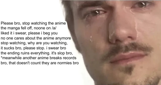>>287731414The trend continues. If the OP image is the ant size vol.1 cover of JJK with some generic negative statement, you can be sure the thread will be shitpost central full of bait statements, pitting series against series and one liners that try to incite lengthy responses.