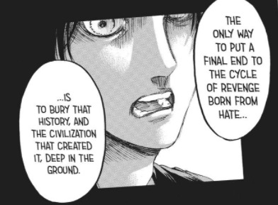 I think for all of his faults, Isayama managed to open a door for the reader to seriously think about alternate outcomes. It has the potential for interesting discussions about what Eren could've done differently and such, instead of ending on a wet fart like MHA and many other manga.