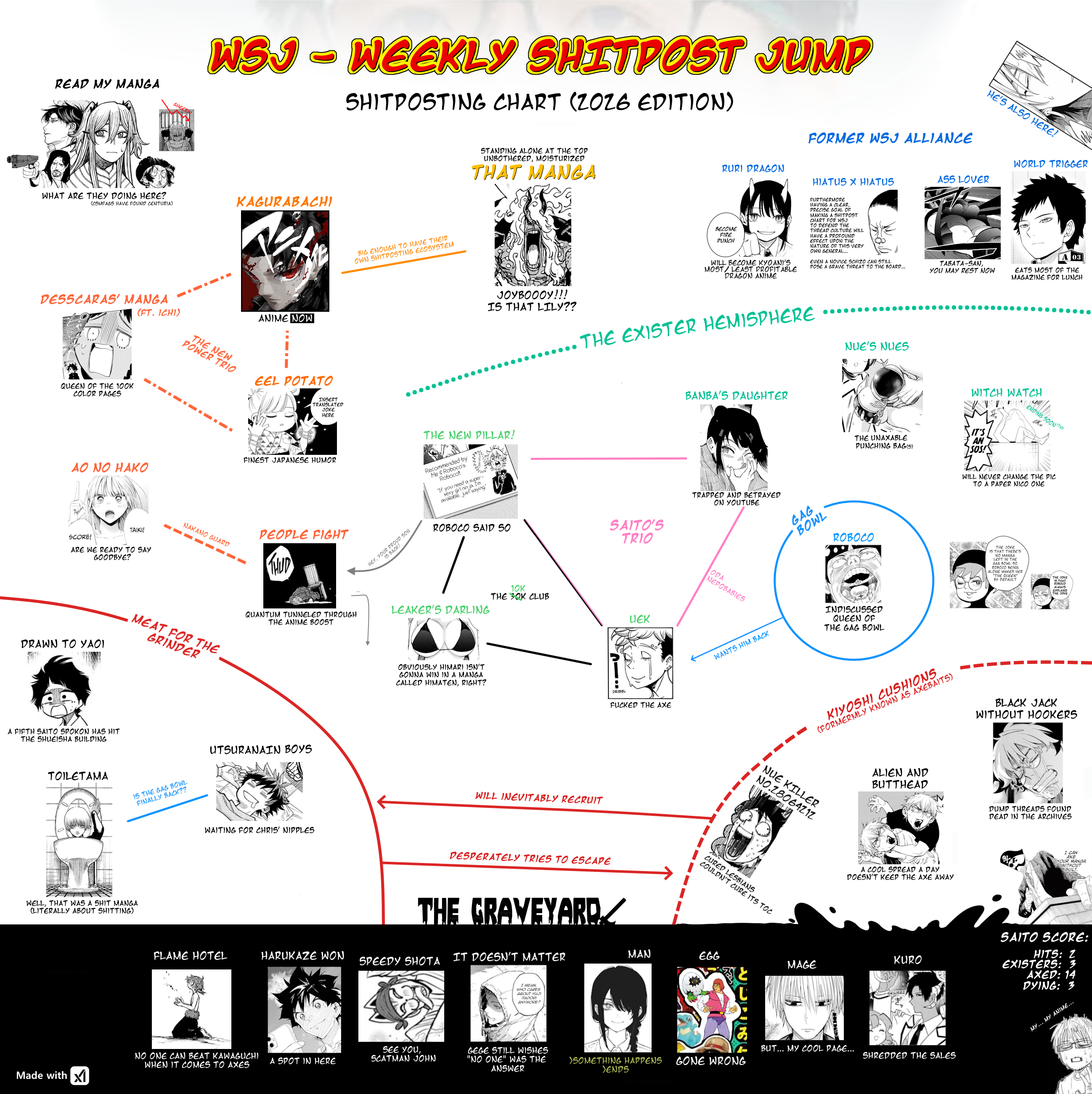 We love Kagurabachi and it's ANIME hereWe love Black Clover and his author hereWe love Kiyoshi hereWe hate Decuck/Horikoshi, Nue (anime never because is getting AXED) and Akaneshilled hereWe hate Gonron2 aka Roku hereBut mostly, we hate J.