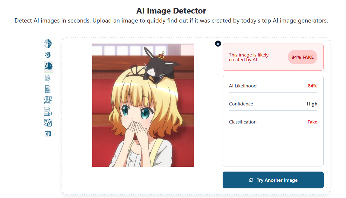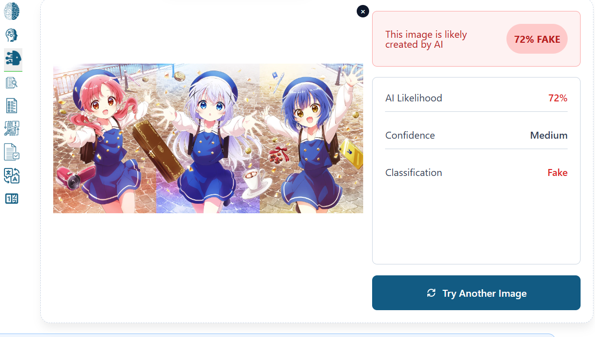 >>287801445I went to one of these sites once and put a couple of images just to test it. The second I put was a screenshot I took from an anime and it said something like "80% AI". The whole thing doesn't make sense in the first place. How are you are supposed to figure if it's AI? Using another AI? But then what is the AI doing to figure it out?