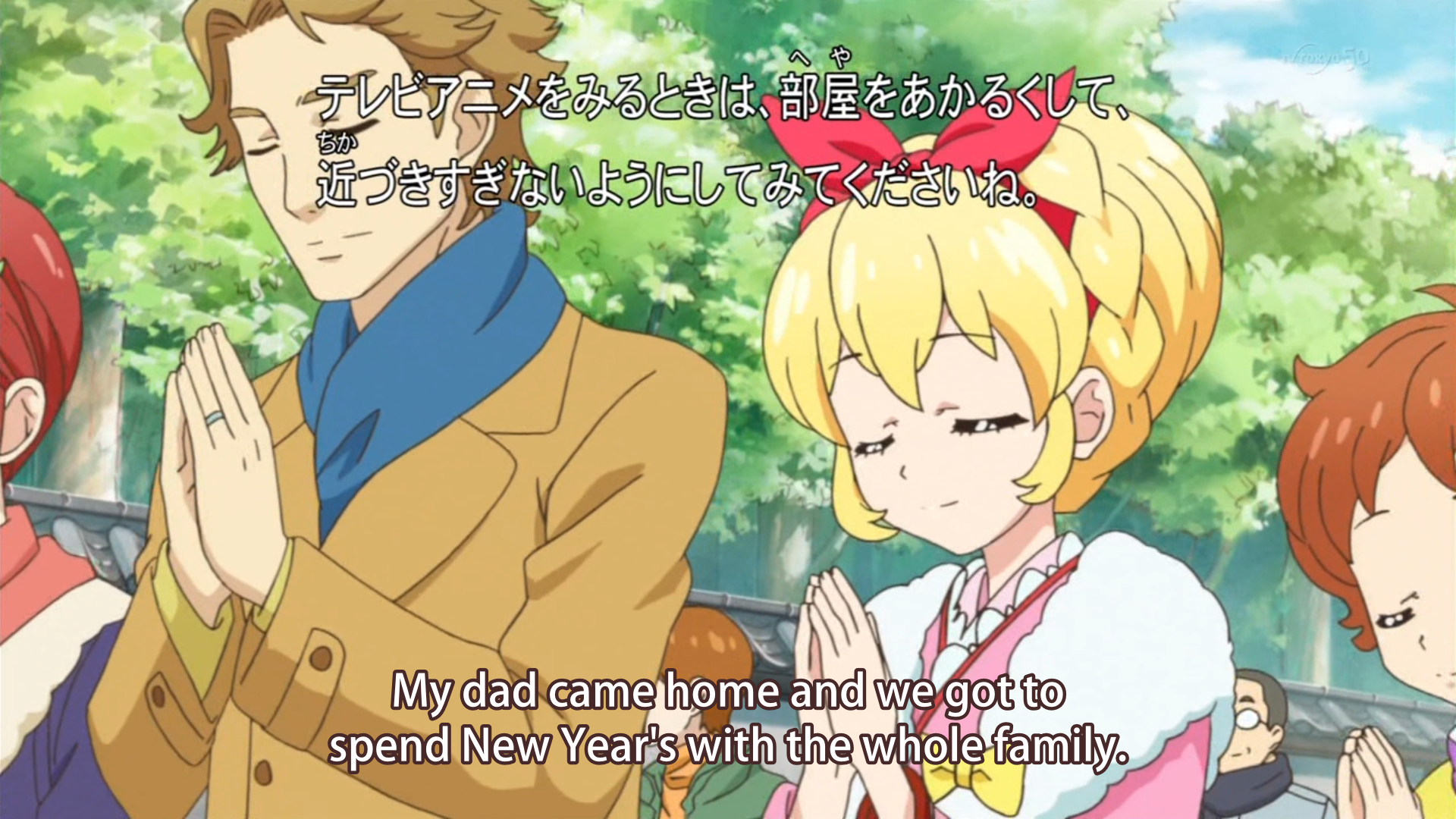 Full summary of the next episode.>5 My First AiPri Fest!>Inori's grandfather is the town mayor. He prays to the goddess statue saying "I want to make this a town full of smiles where everyone can have even more fun than they do now." Upon hearing this, Inori proposes gathering a large crowd in the town square and the holding the "Onegai Town AiPri Festival" or "AiPri Fest" for short. There weren't many people gathered in the square though. However, with the help of Koharu from the AiPri Club, people gradually begin to come. As the people gathering continued to grow, Inori, Aoi, and Gumi were getting excited. The festival is finally about to begin!