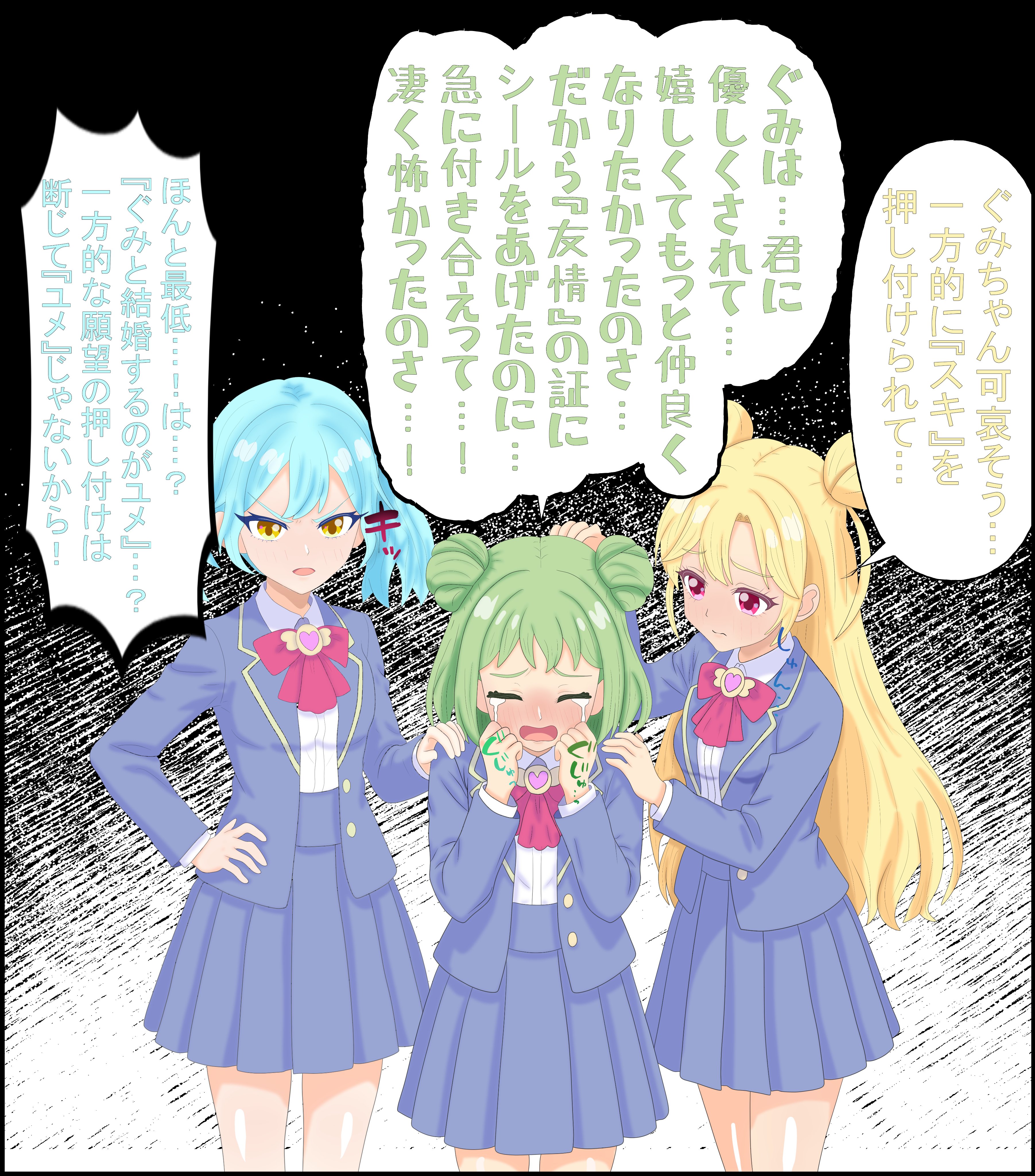 you know you dont see yumejo art of aipri like at all to the point that it feels weirdly novel to see iti guess because it had that singleminded focus on fixed pairings to a ridic degree so it naturally deters that type of interpretationtheir self insert is how i picture ainon