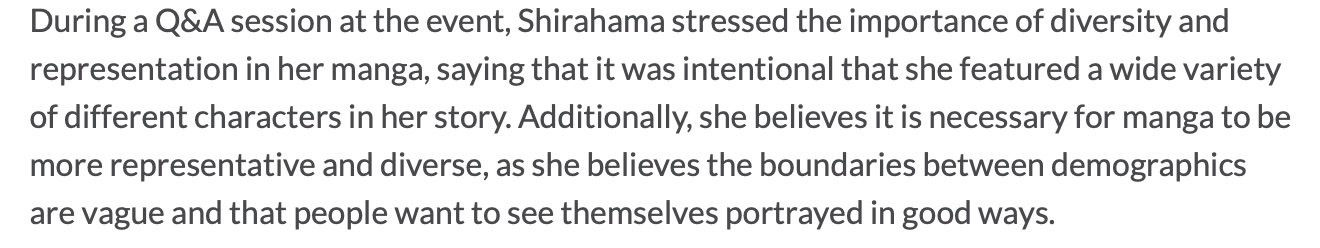 >>287795090The mangaka was speaking about people.The diversity crowd are massive hypocrites, don't even know which ones are worse — the genuine types or the performative types like the mangaka.