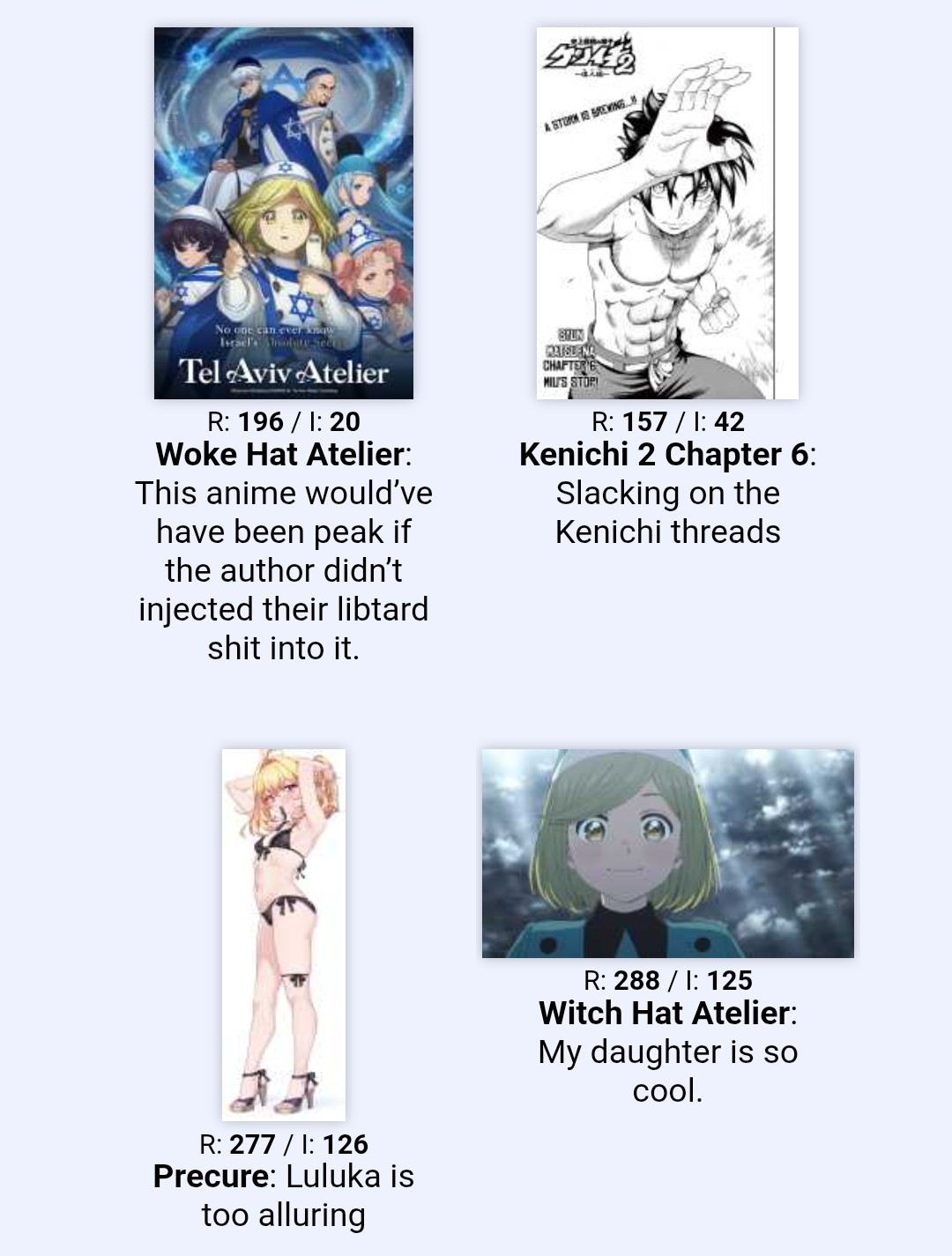 >>287795238Frieren ended so he needed something new to sperg about daily.