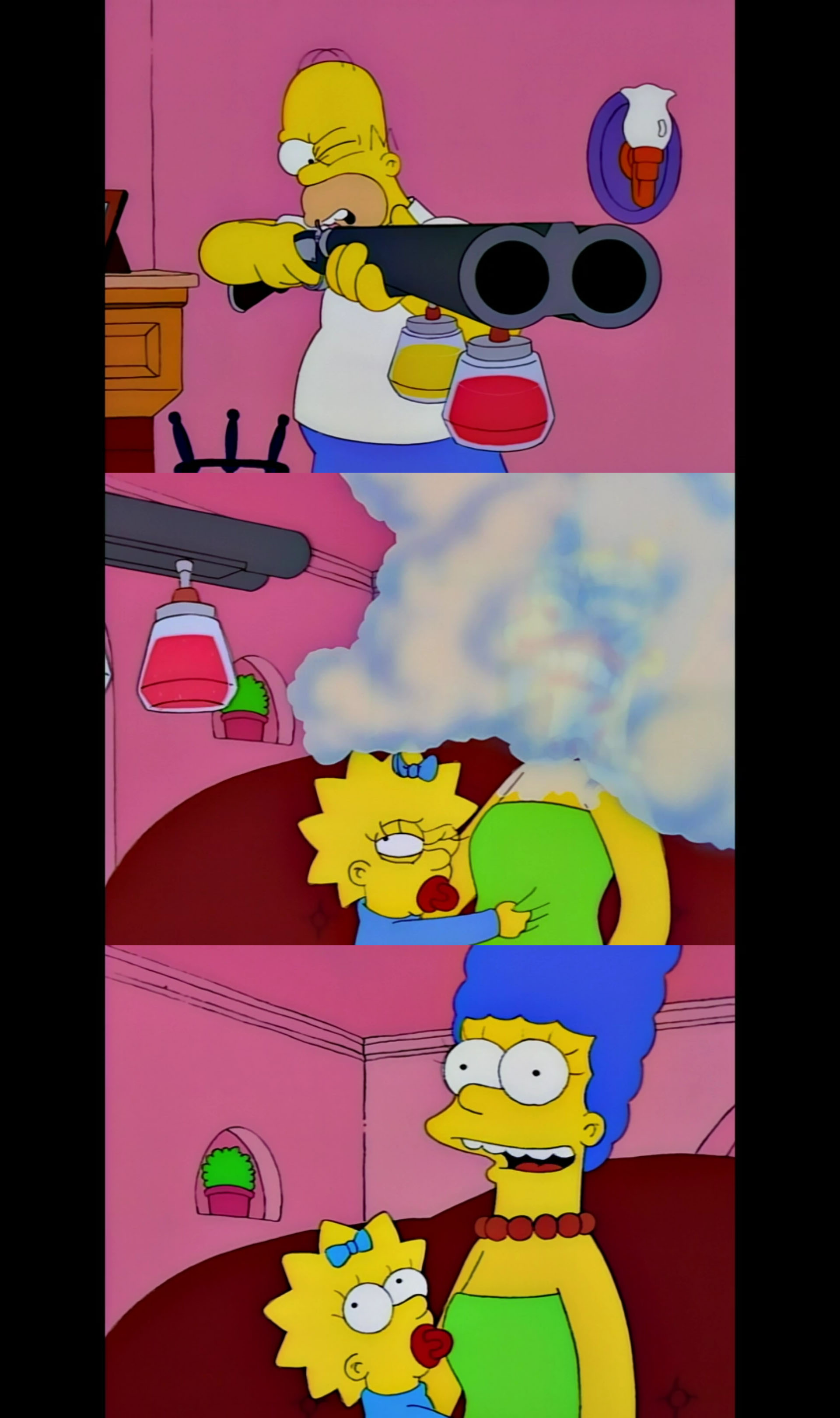 Can I get any artist's interpretation for the last image. Big boobs, whore make up whatever tickles your fancy for Homer's gun.