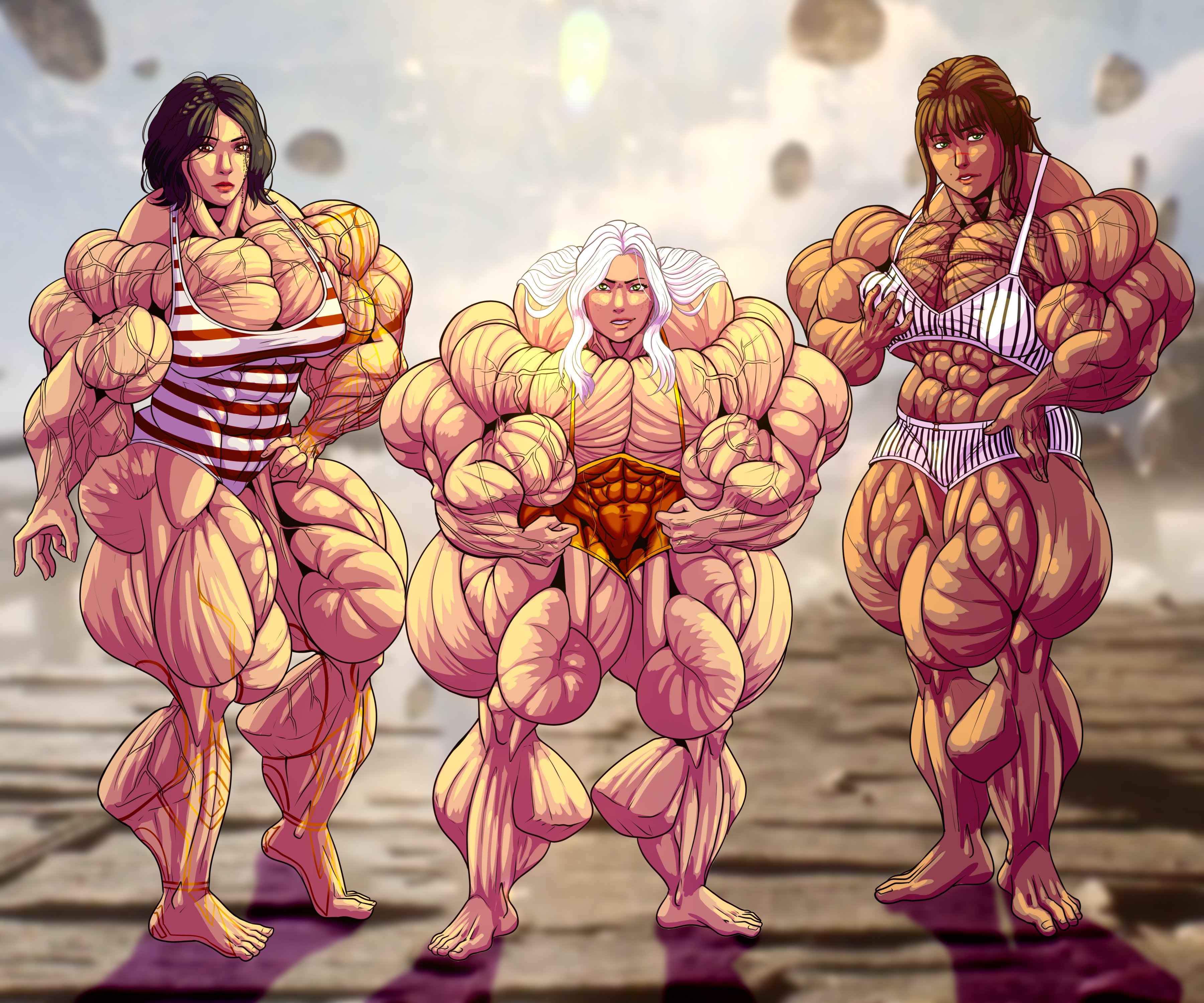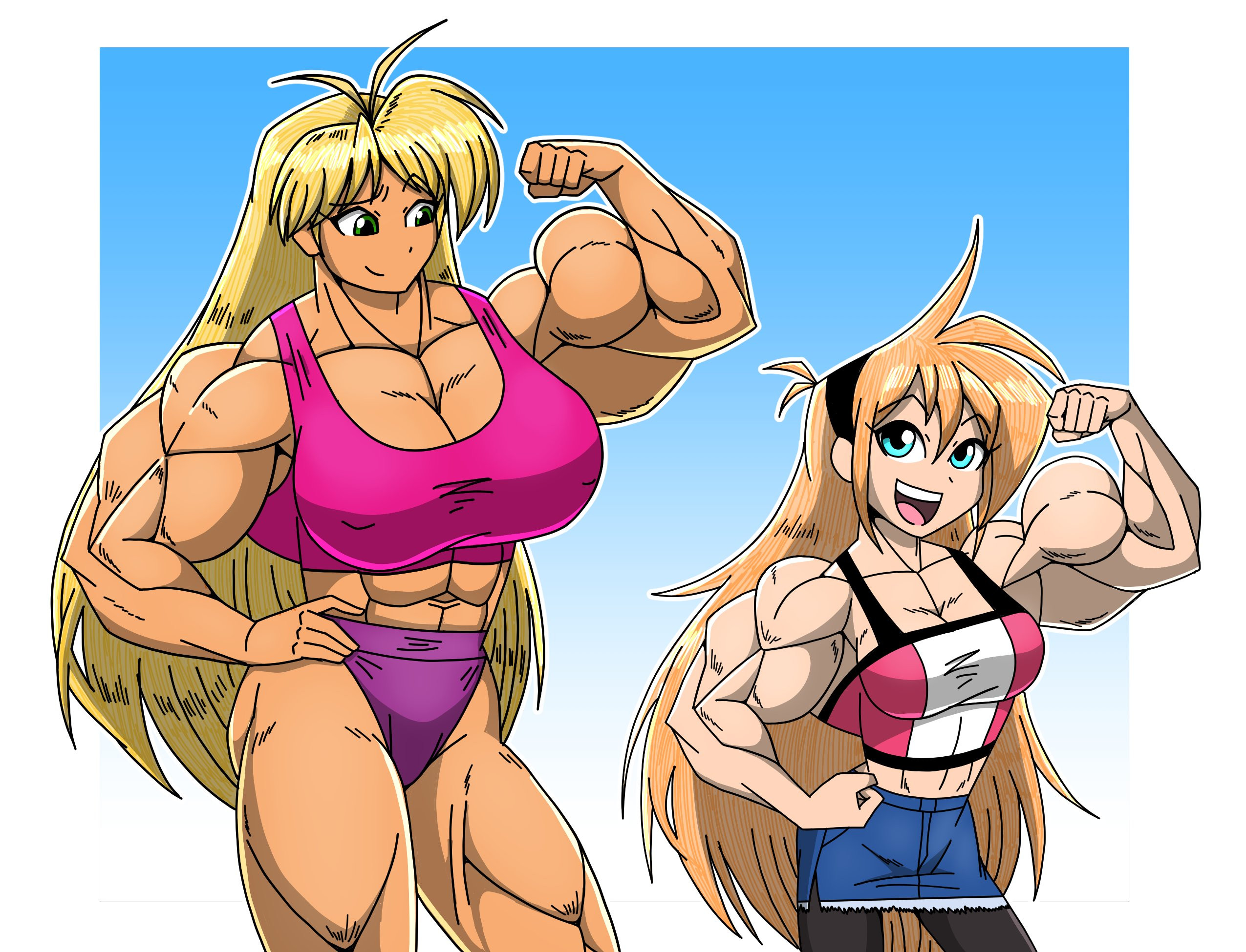 Cartoon girls with HUGE muscles.Not ripped, toned or athletic.I'm talking MASSIVE muscles.