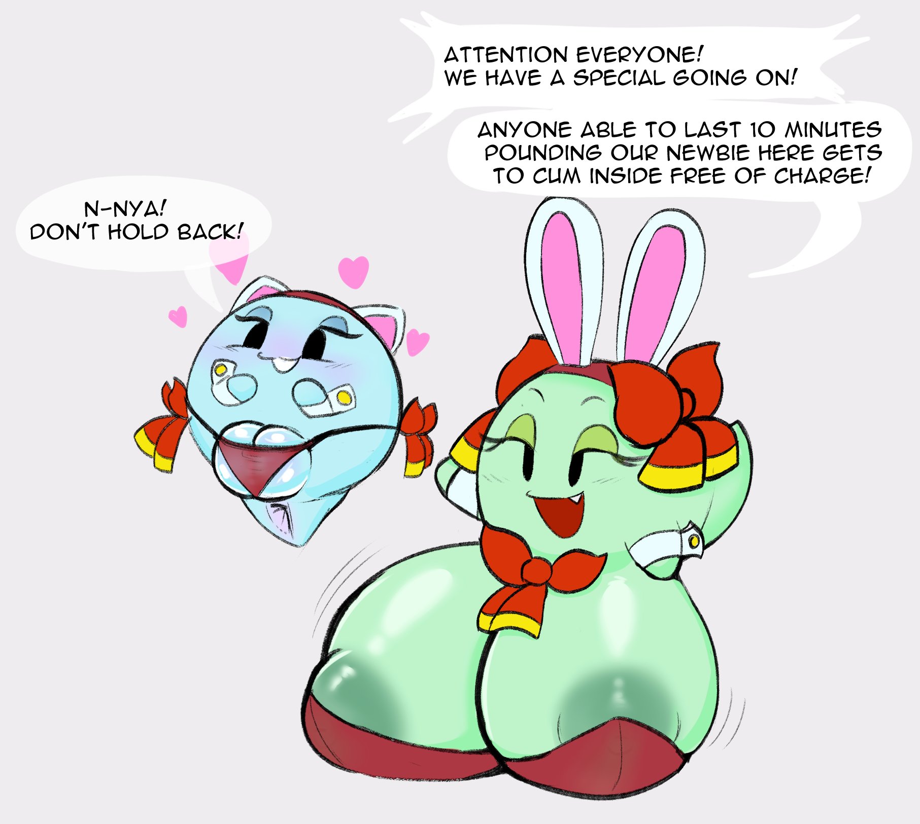Boo's and other bad orbs, waddling heads, ect. Anything thats short, round, and thirsty. No futa, no gay or solo male.