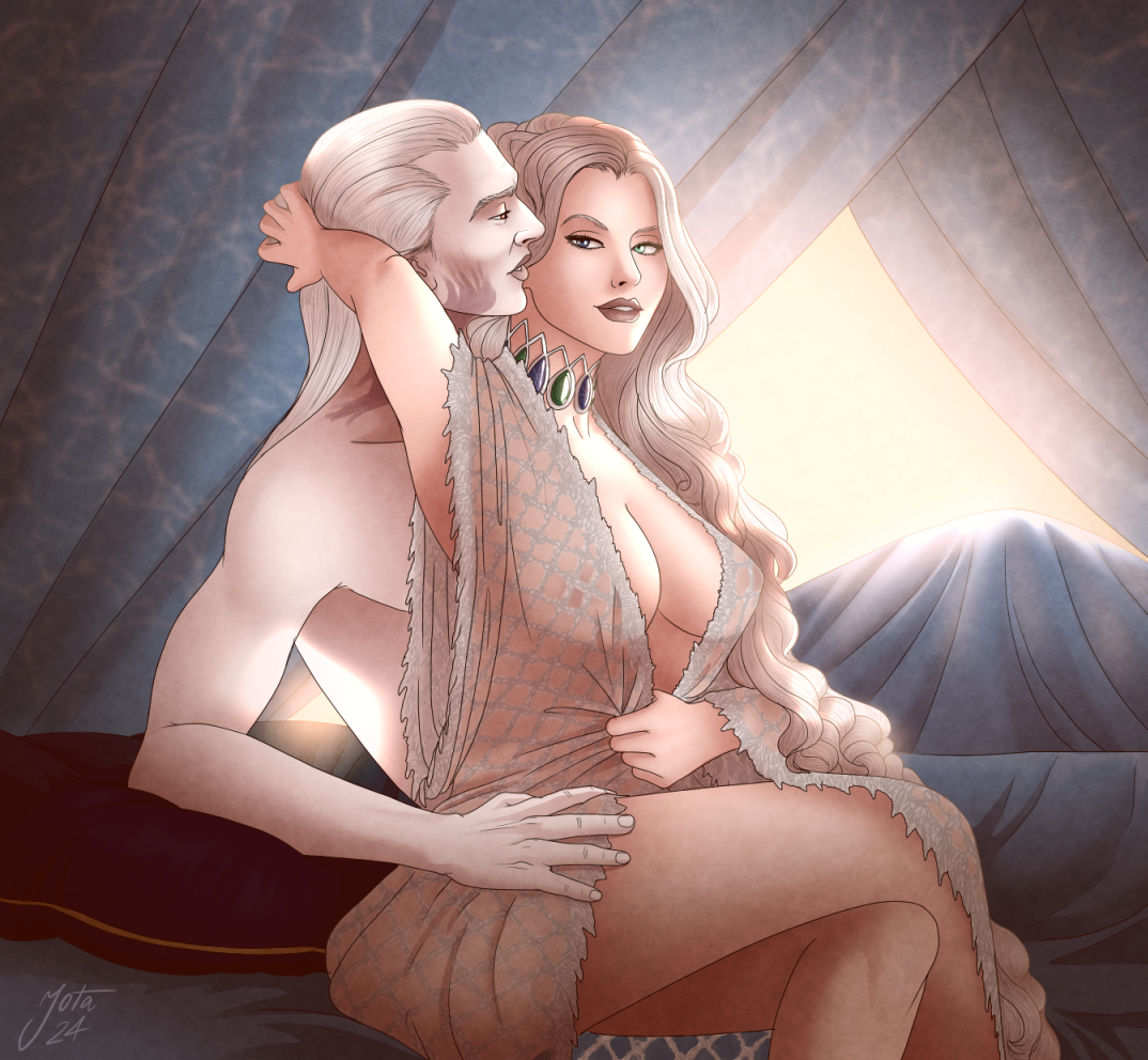 "It fits perfectly, Your Grace... the Dragon needs a weapon, forged from Valyrian steel, that is worthy of her. Now... will you require me to consult you in your chambers to 'test' it?"