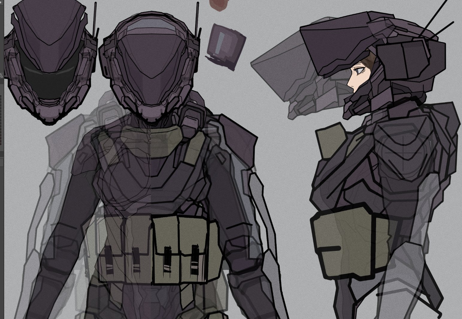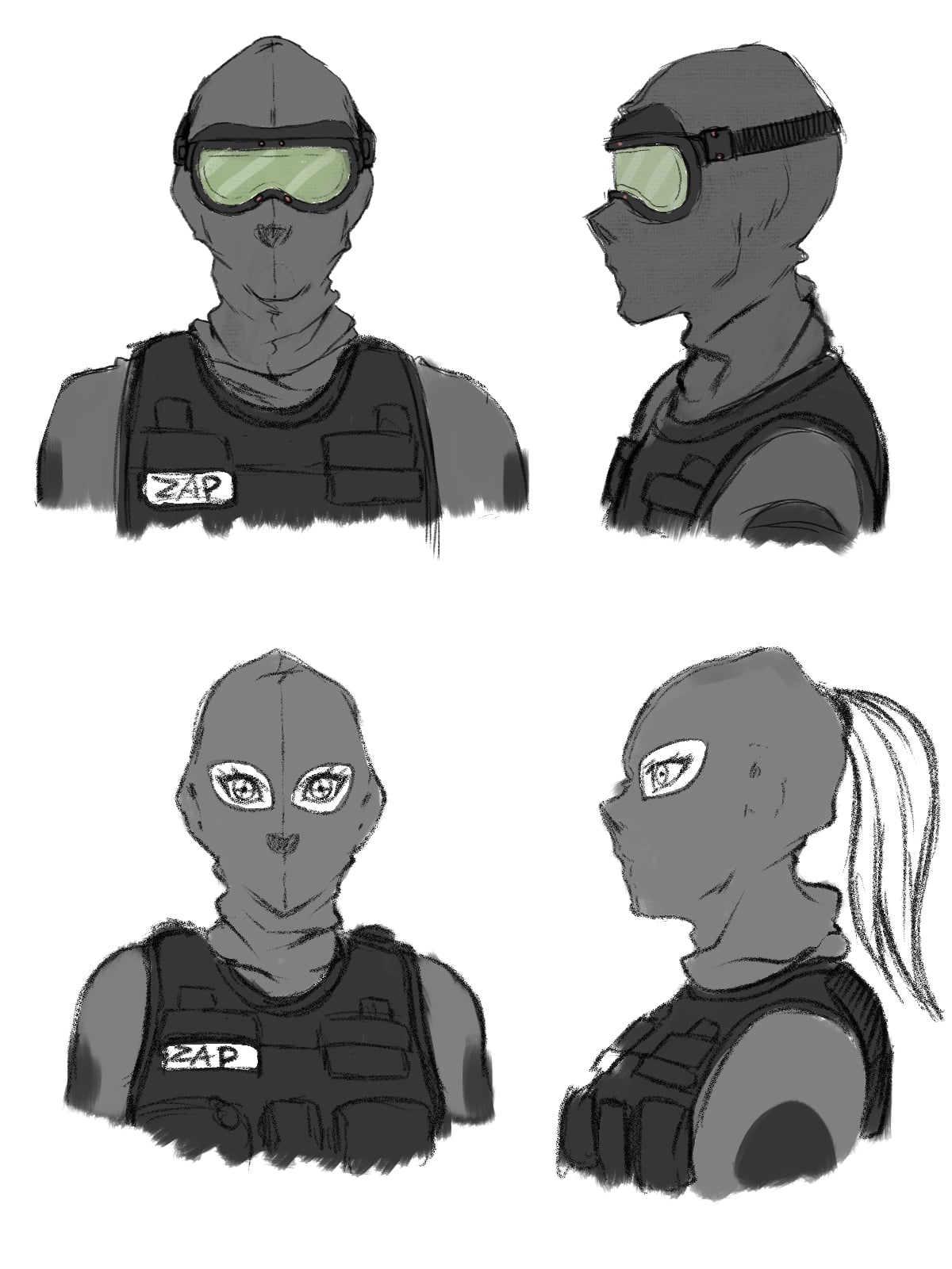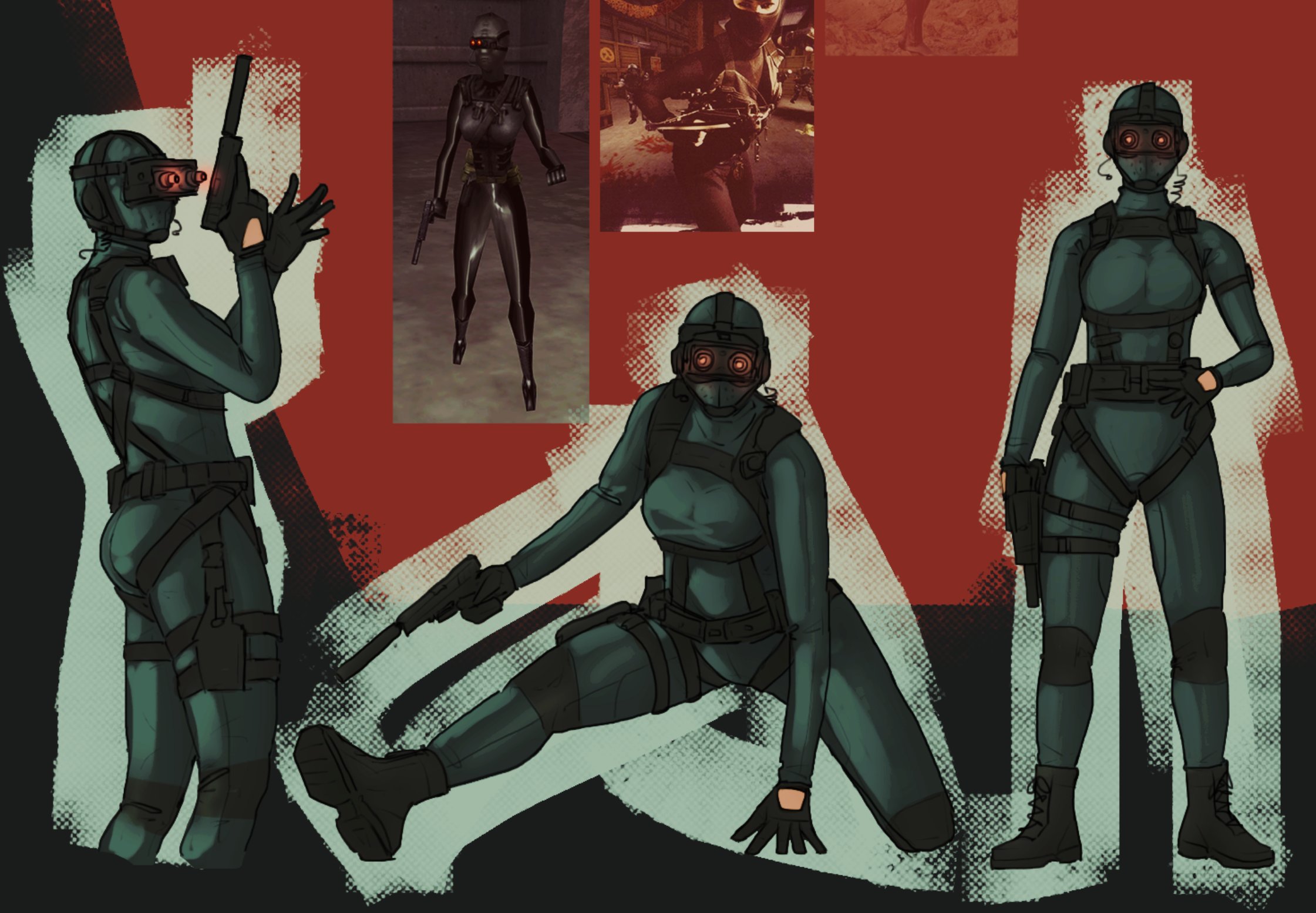 >>8992906That can be arranged cause the half-mask design was more meant for named scientist characters like Dr. Greer. The randoms could get a full face version along with the upcoming suit design. Another concept we got flowing is for The Miscreants which is a special forces team that Zenith got. We started on designs of their leader, originally I wanted a more two lens design for the goggles but artist bud wanted to go full on with the quad.
