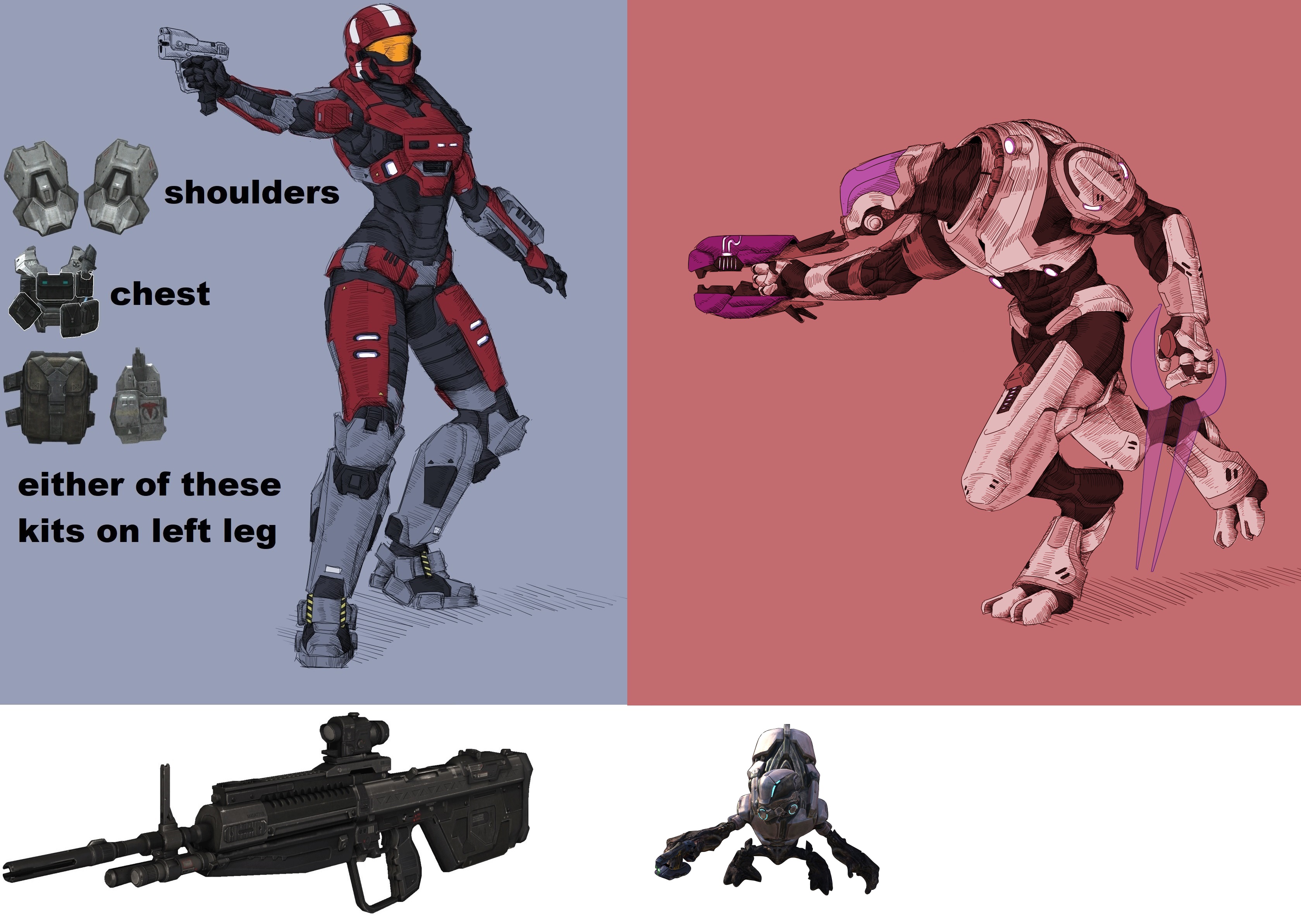 >>8987743A few years ago a anon on /wsr/ did 2 drawings for me, a Elite Ranger and a female Spartan III. A SFW request of the female Spartan III (shotgun), Elite Ranger(Energy Sword), 2 Ultra Grunts( Plasma Rifles), and a Brute Major(gravity hammer) surrounded by the Flood or A lewd SFW of the Spartan III bending over or squatting checking a container. The Elite Ranger, and the 2 Ultra Grunts staring at her big Spartan ass