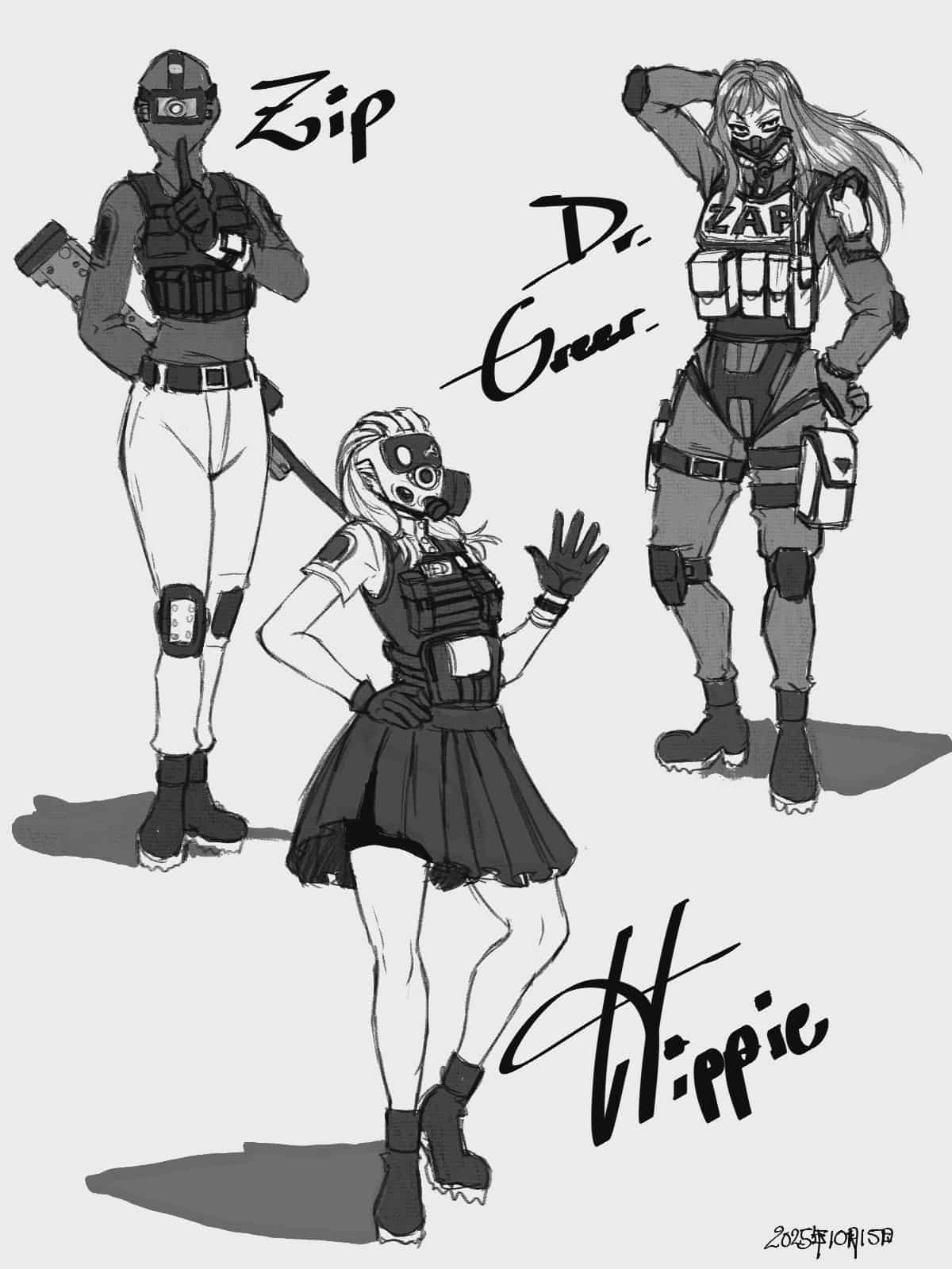 >>9014155>>9014347>>9014425Thanks for the advice on the designs, anons. When we put them in the comic we'll go with that Electrohead style that was suggested. Also new art showing two of Novy and Mule's other coworkers. Zip and Hippie actually did appear near the end of Chapter 1 but we gave them a new look.Also Dr. Greer wearing what Zenith scientists are given when accompanying ZAP on field missions.