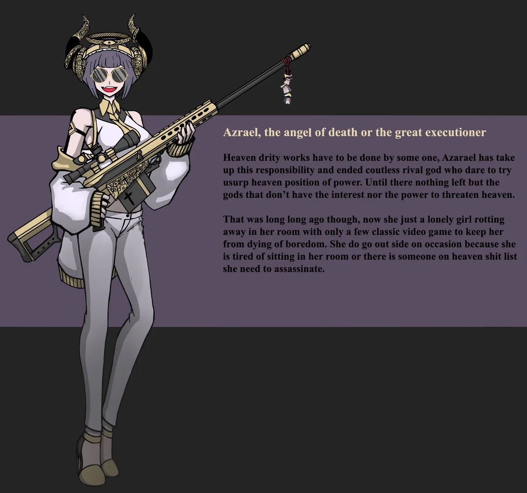 I've got two demons coming in to mess with the angels this Sunday!Valkeera van Helmond“ABSOLUTE EMPRESS OVER THE SERVING UNTERMENSCH!”— Mymy, Ongezellig“A great fire burns within me, but no one stops to warm themselves at it, and passers-by only see a wisp of smoke…I often think that the night is more alive and more richly colored than the day.”— Vincent Van Gogh “The field has eyes, the wood has ears.”— Hieronymus Bosch>Valkeera is not part of any official Infernal Royal Army division, preferring to remain freelance >Her crossbow, "Doemspanner" (Doomdraw) has been known to pierce angel armour and can hit accurately from up to a mile away>She hates Belgians>She LOVES spices and tulips, although she never puts any stock in the plants anymore >She learned her lesson in 1637>She has, however, learned a great deal about trading and makes for an excellent sailor, making her invaluable for any squadron or division she finds herself assisting>She rarely, if ever, smiles, and would much rather paint what she's feeling than say it out loud >She and Medb work together so often that many believe them to be a couple >Medb will joke about it, but there's been several times where Valkeera has rested on her lap while smoking a joint at home, wearing her favorite pair of shoes>She'll swear by the Styx itself that klompen are in fact comfortable >She's more frugal than a demon from the Greed Circle, and absolutely expects you to bring or pay for your own stuff>Hope you brought your own bike for a date!>She's a no-nonsense type of demon, rare outside more professional IRA divisions >If she doesn't like something, you'll hear about it 1/2