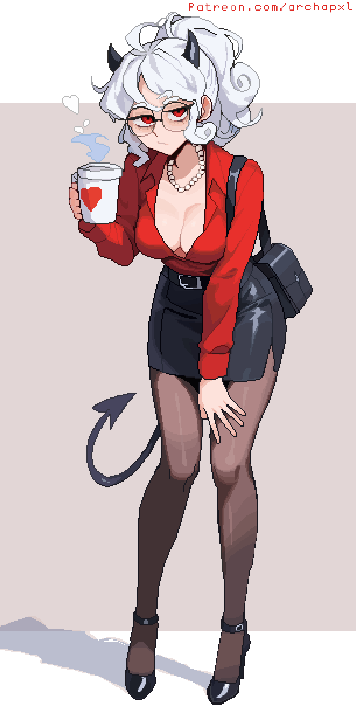 >>9008140Pande was given a better job by Baphomet. With more pay, all the Colombian dark roast she could chuck down her throat, and less stress. The downside for her being that her new corporate uniform is of an extremely slutty OL: cleavage-revealing shirt, very short leather miniskirt, seamed - and crotchless - pande... I mean pantyhose, and 6-inch fuck-me heels with ankle straps:...but as >>9007935 demon-strates, beer makes Malinka very sweet & loving.