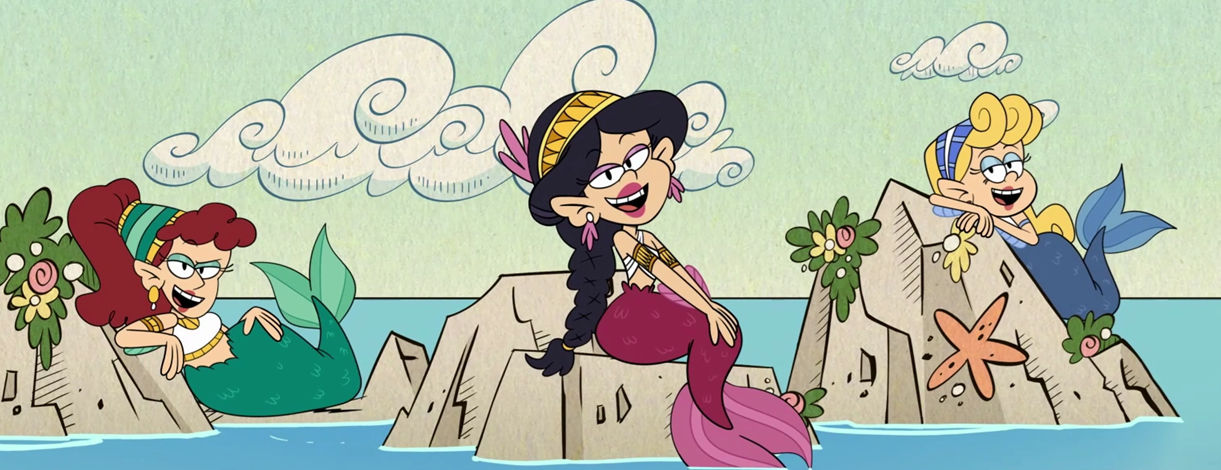 Requesting a Screenshot edit of The Sirens from The Loud House episode, Europe Road Trip: Greece Is the Word by removing the fins on they're arms, they're tops and Mermaid tails, with them having human legs, asses and also being naked.