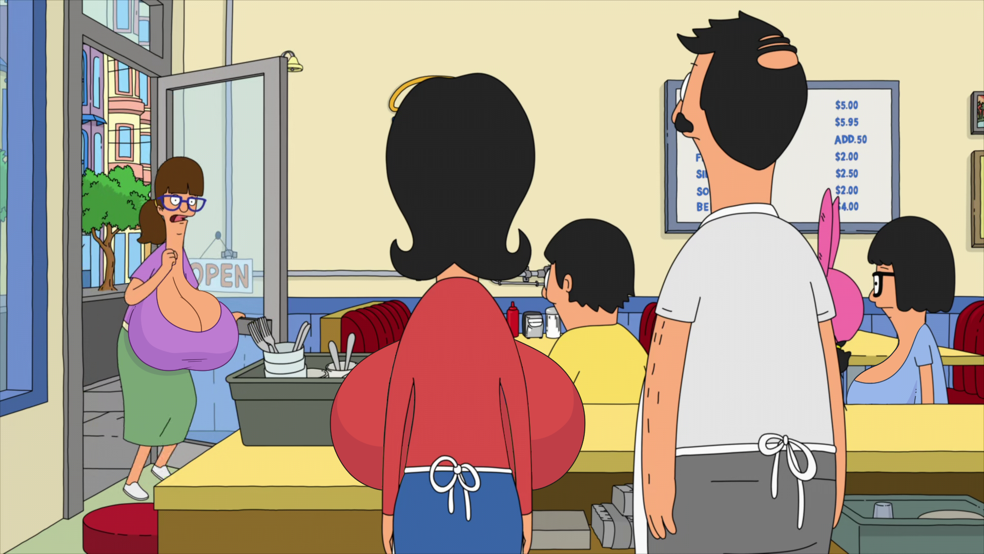 Make the girl's tits big, and give Steve a boner.