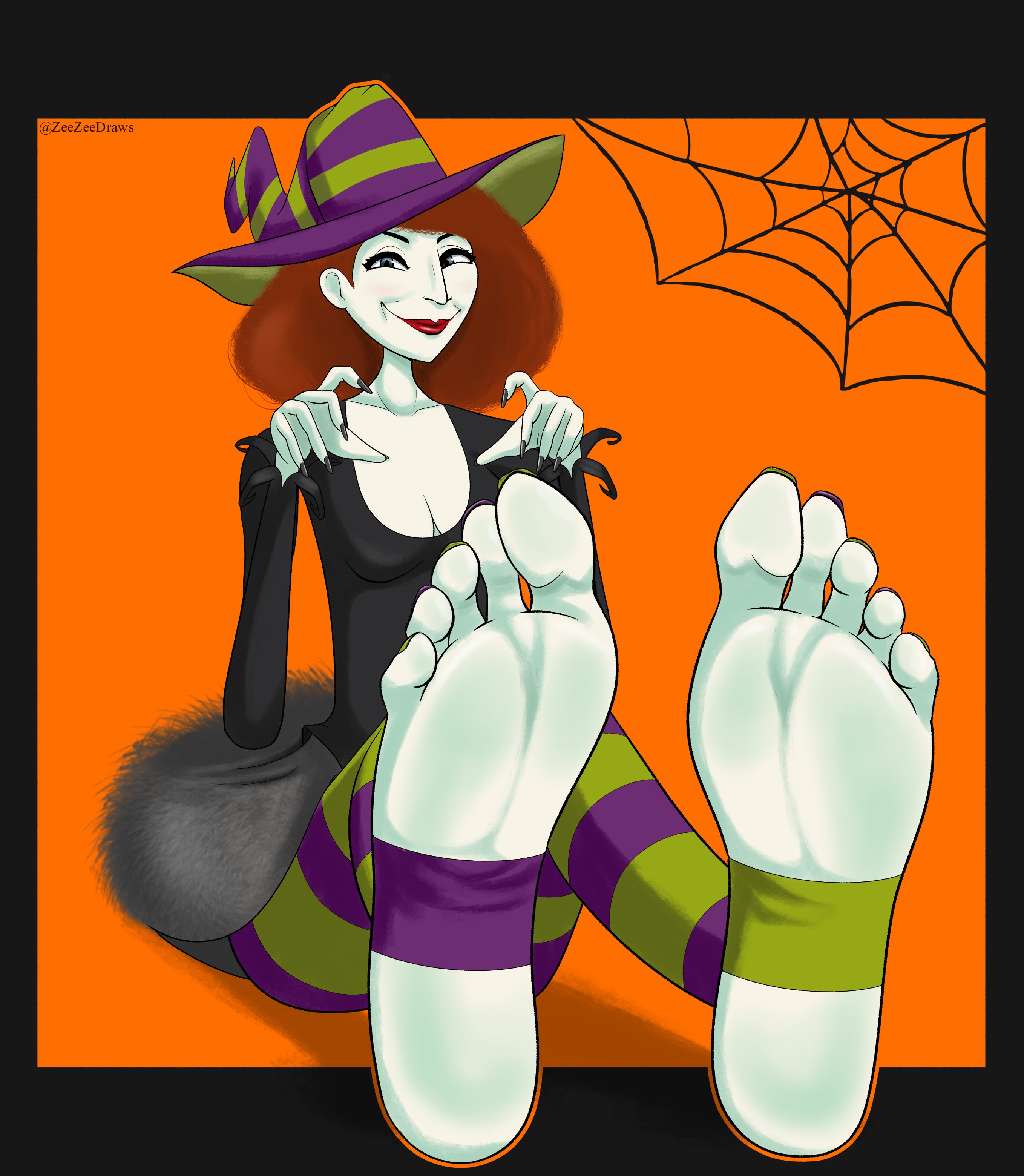 >>8996654A goth Shantae hanging out in a spooky version of her house. She could sitting on the bed with a pile of candy next to her teasing the viewer with a lollipop between her toes.