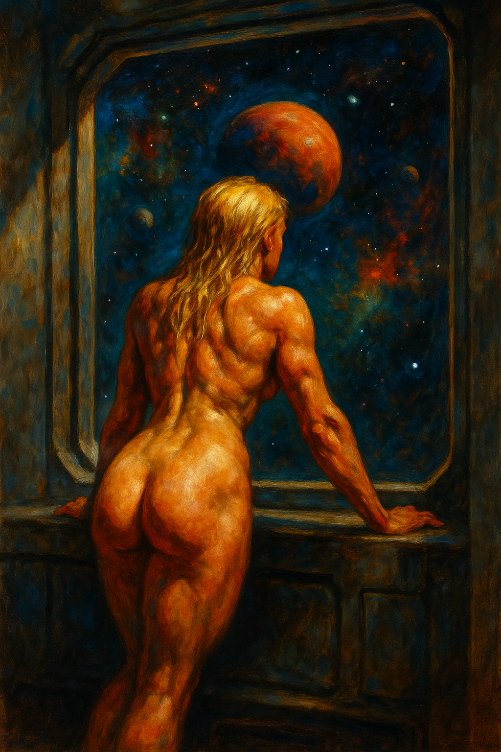 >>9015817Prompted. Something like plump blonde woman standing next to muscular man, posing nude on the beach. Side shot