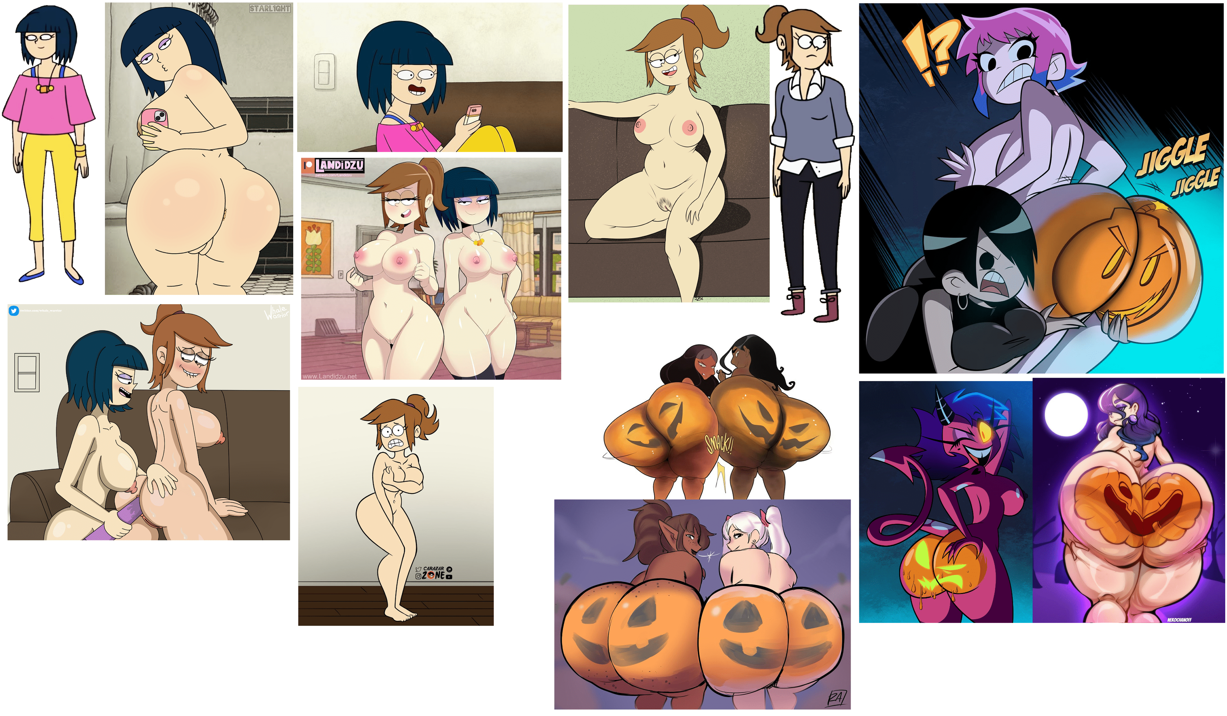 >>9017225Requesting Emily Ramirez (left) and Bridgette Hashima (right) from the underrated series Close Enough, completely nude, showing their asses (both of their butts are painted like Jack-o-lanterns) and also seductively shaking their asses