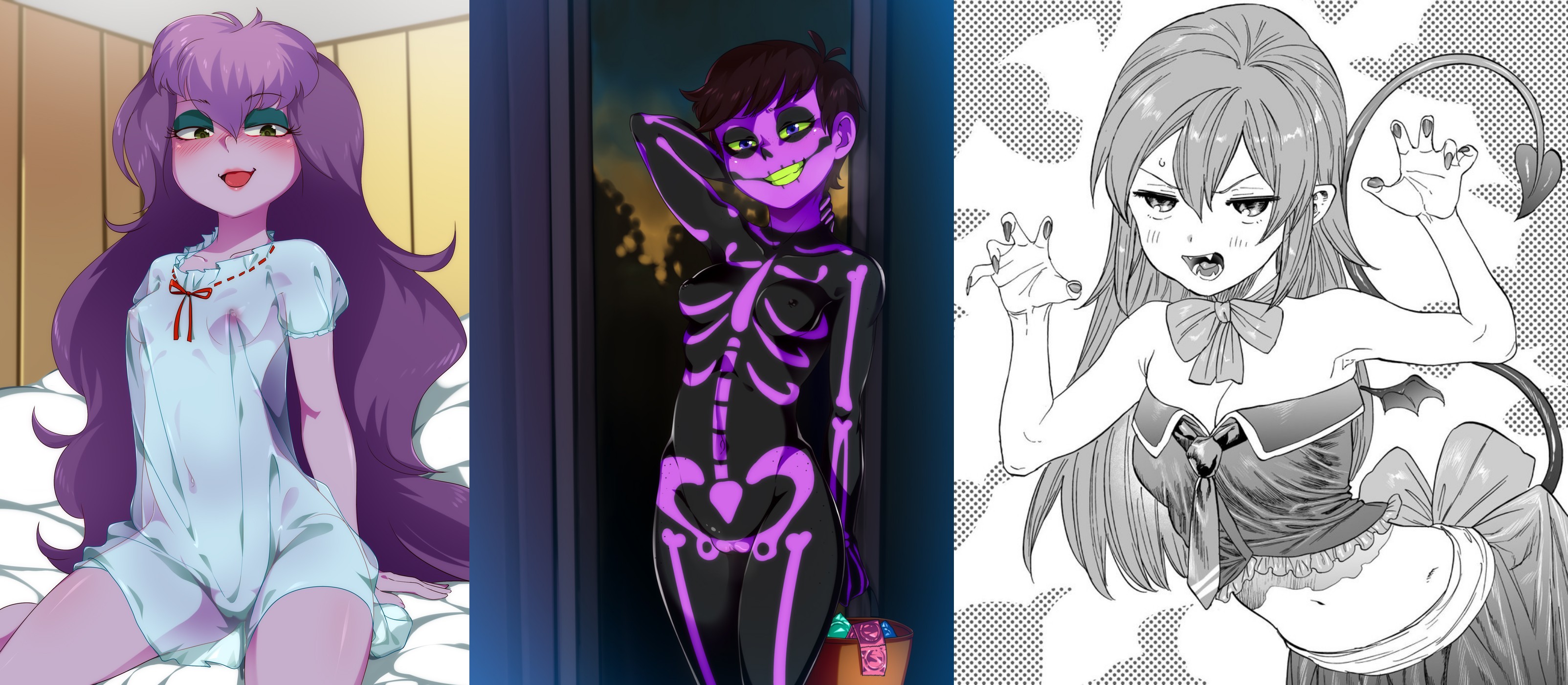 Requesting Sibella in naked skeleton bodypaint in the pose on the right with her fangs out