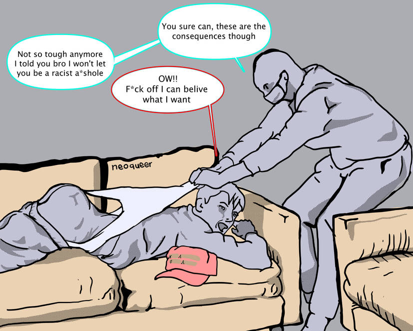 >>9028902>>9029196As someone who is pretty anti-woke/"keep politics out of thing", I ironically really like it the rare times politics get used in wedgies. Like despite being right leaning my humiliation and wedgie fetish makes me get turned on seeing some artist/writer get heated depicting some right wing caricature as a loser getting humiliated and bullied. I'd ask if there's anyone who's the reverese (a left winger who enjoys seeing their side get depicted as wedgied losers), but that's a lot more rare to see in our community.