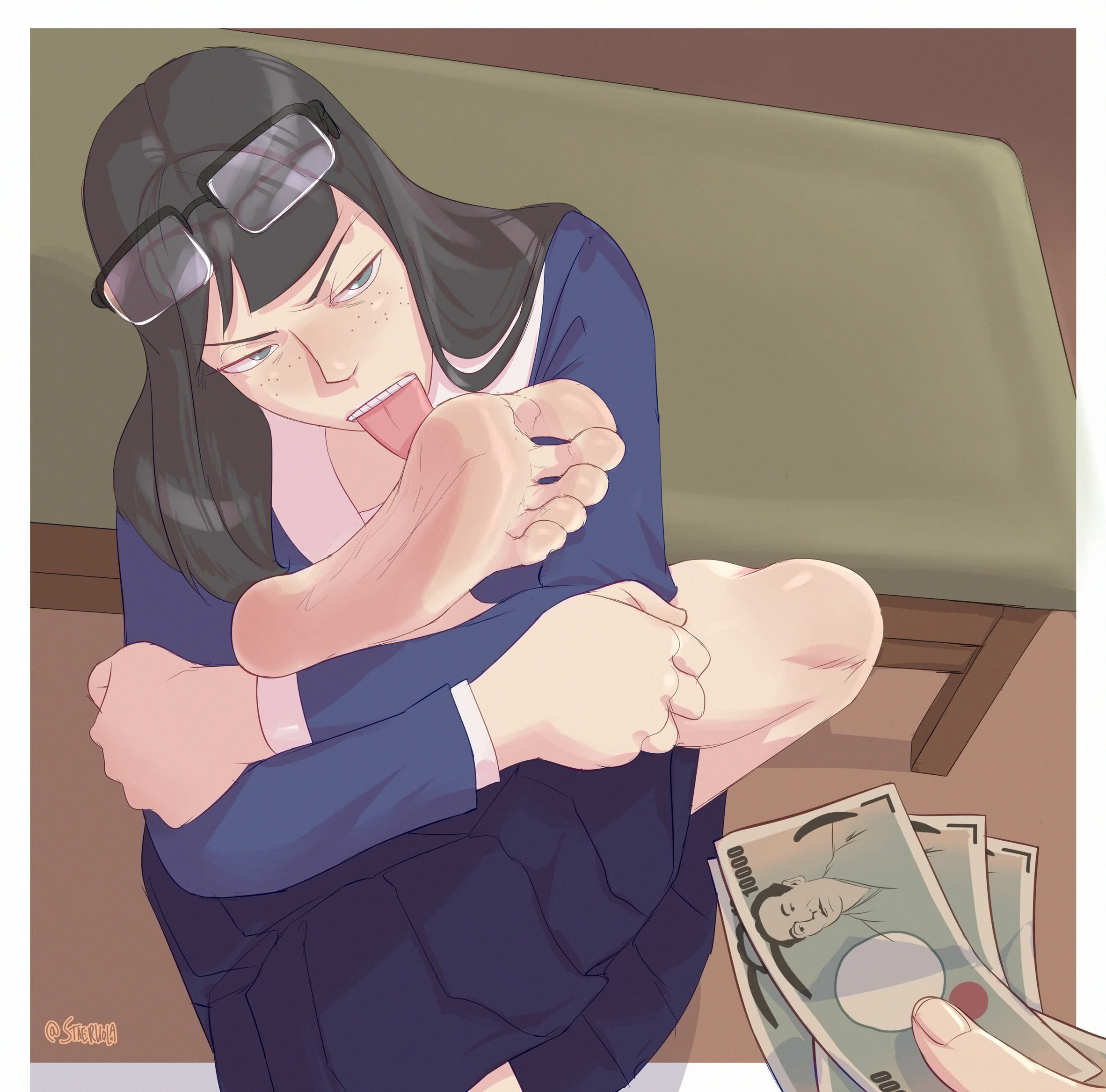 Artist actually drew a scenario of an Asian woman he saw walking around in flip flops who I think he said had big feet. He even creepshotted her feet, unfortunately he took the vid down.