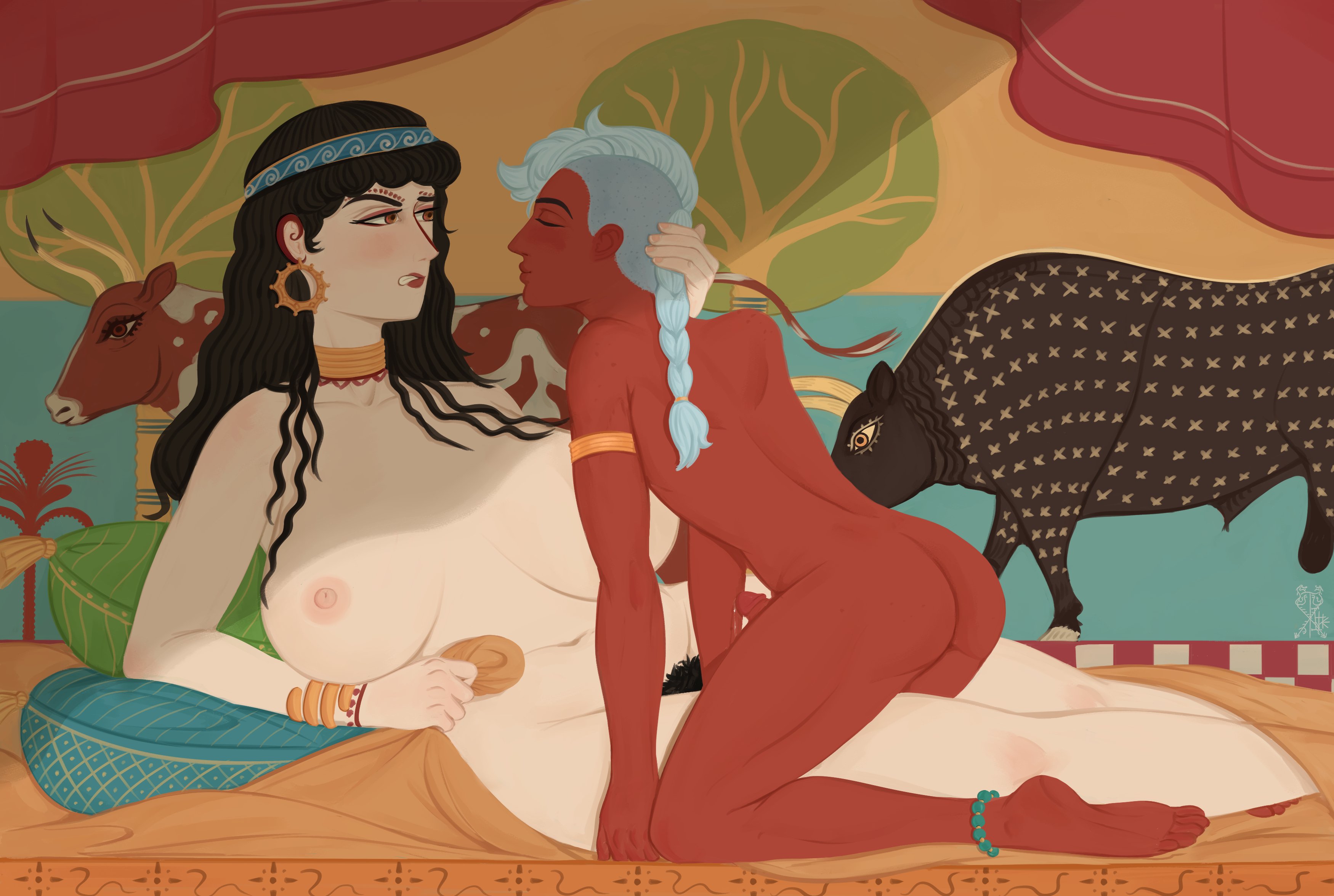 >>9071063I'm too distracted by that fucking foot to even start getting aroused by implied cross-tribal intercourse.>>9070206>pale with black hairThis Egyptian is a man after my own heart. I think I've seen selections from this scroll before, a long time ago. There's one where the girl is getting railed and applying makeup at the same time. Also neat to see that putting blue highlights to give detail to black hair is at least this old.>>9066214Don't have as much to say about this one, other than that I bet the models for this mosaic were hot, if there were any.
