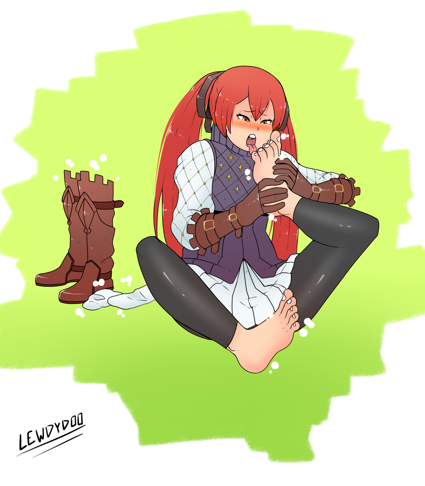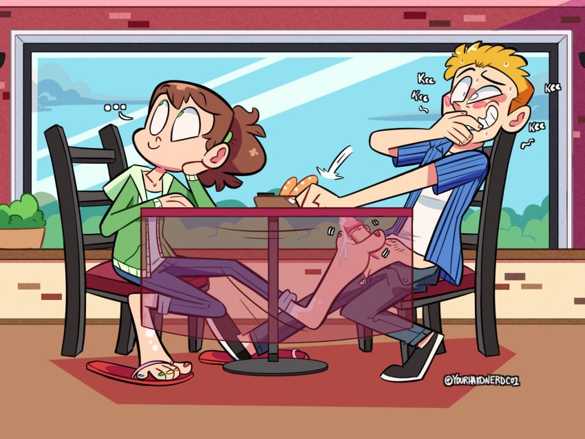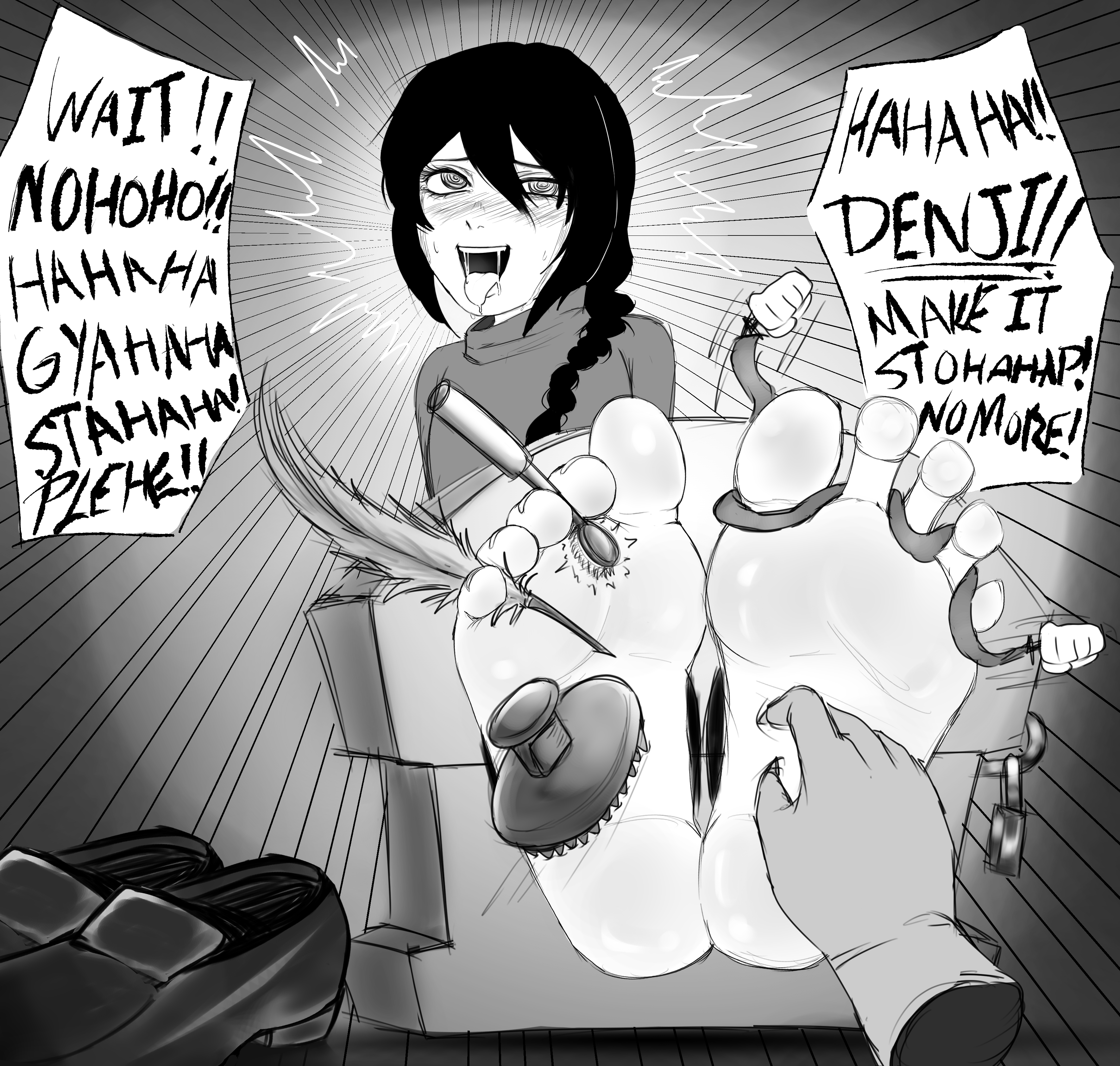 >emphasis on another character slobbering, gagging, smelling, etc the feet