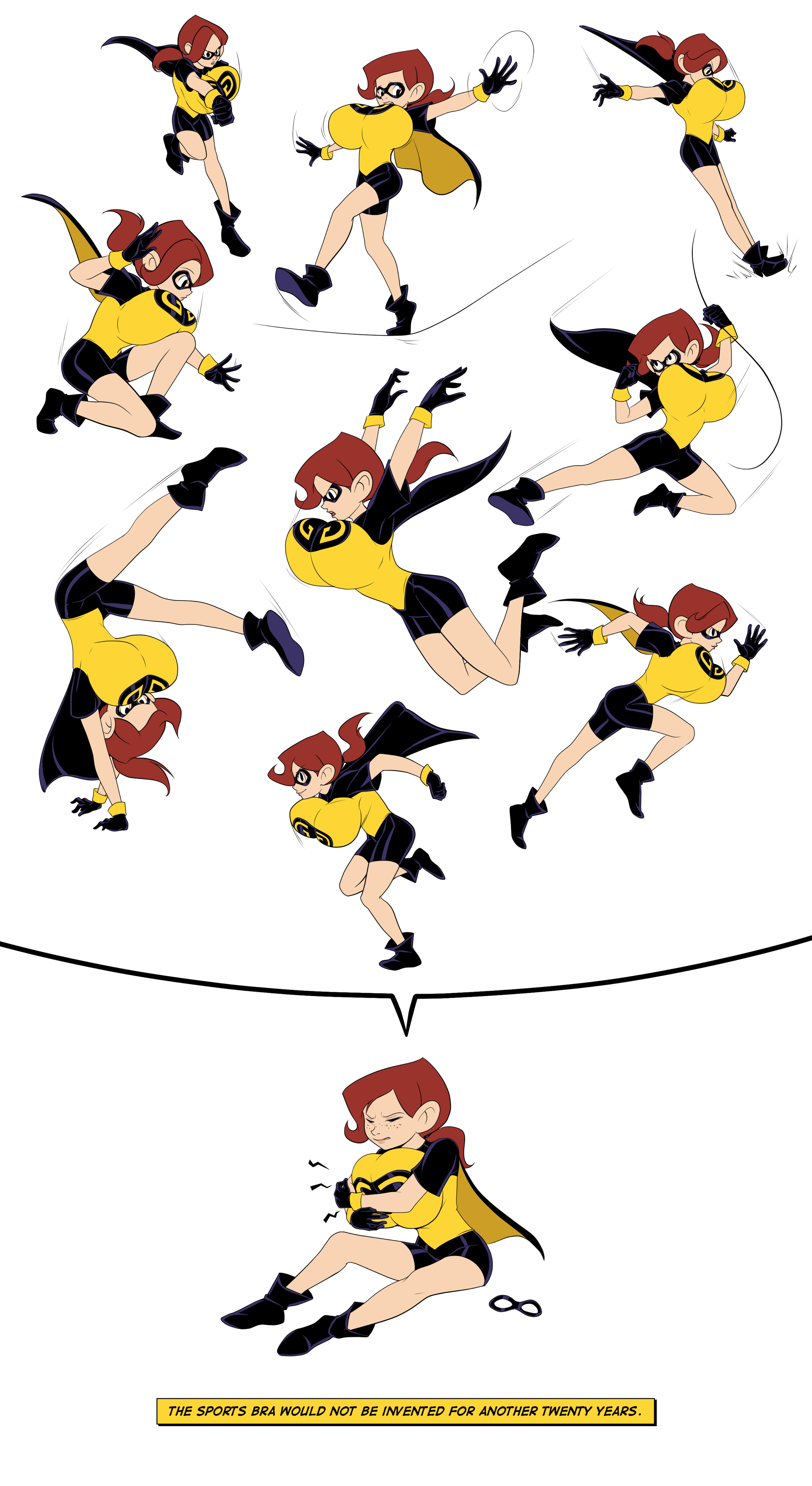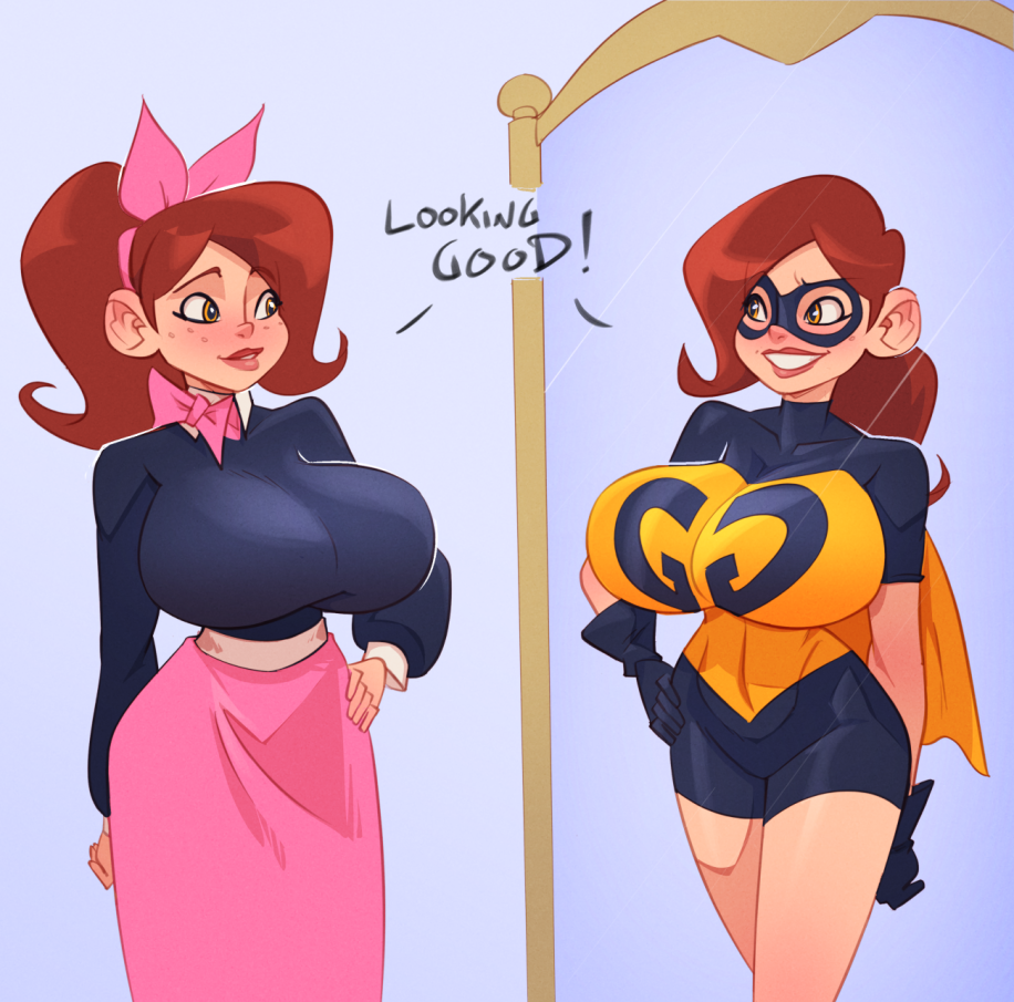 I've had an idea for a somewhat in-character GG story for a while, and I'm just going to throw it out here in case anyone has a use for it.Audrey feels torn between her responsibilities as Golden Girl and her desire to have a normal adolescence and social life, and also laments her cup size getting in the way of her hero-ing.While fighting a reality-bending villain alongside Silver Queen, she gets hit by a stray beam that splits her into two people: Audrey Page, well endowed and totally normal high schooler, and Golden Girl, flat-chested super-sidekick.After the initial weirdness, both Audreys realize this is their chance to fully dedicate themselves to one aspect of their life. Golden Girl becomes a more dedicated and effective crime-fighter than ever, and Audrey gets to actually hang out with her classmates and enroll in extracurriculars.But it gradually becomes clear that Audrey's sense of responsibility (and chastity) all went to Golden Girl, as she starts slacking off in school, partying too much, and enjoying the attentions of boys. She starts dressing sluttier (in a 50s way) and flirting with everyone, including male teachers.Things come to a head when Audrey decides to go all the way with a hunky upperclassman at the same time as Golden Girl is fighting a supervillain. Both Audreys realize they can feel what the other one is feeling, putting GG in a predicament as she feels a climax building while literally wrestling the bad guy. Being the pure half, she has no idea what's happening.That's about as far as I've gotten. It could go in various directions from there, maybe their shared orgasm rejoins them and Audrey has to deal with this awakening, or maybe things keep escalating until Audrey is a dropout sex addict and GG is actively trying to hunt her down, stymied by spontaneous orgasms. Or maybe the other way, GG gets captured while cumming and Audrey has to rescue her, despite no fighting skills. Or some other wacky idea.Just food for thought.