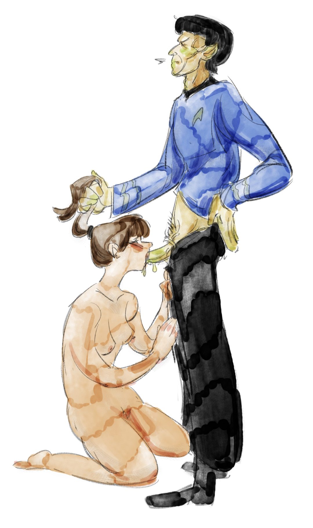 nice! I like the way she draws the intimacy from her boyfriend here and how she draws the tenderness in which he's performing over here. Also, the smaller details like the smile, hand placement, etc. She does a good job with it, I wish she posted more.