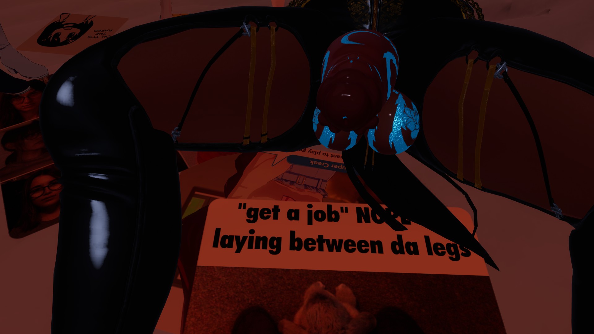 >>9072106Thank you!Looks like I had that favorited already, but I don't remember it having this many variants. I want how easy it would be to make custom masks. Mines just a flat texture and not even very high rez, but I really like the way its shaped,>>9071975Its called Room for Dancinghttps://vrchat.com/home/world/wrld_9594b646-ef5a-4e71-8bfa-87eed337c48c/infoThat npc dance has dps btw. Hopefully once we get world SPS they update her with it.I am SO pumped for stuff in worlds being able to trigger OGB. Bring on the new era of fuck machine worlds!