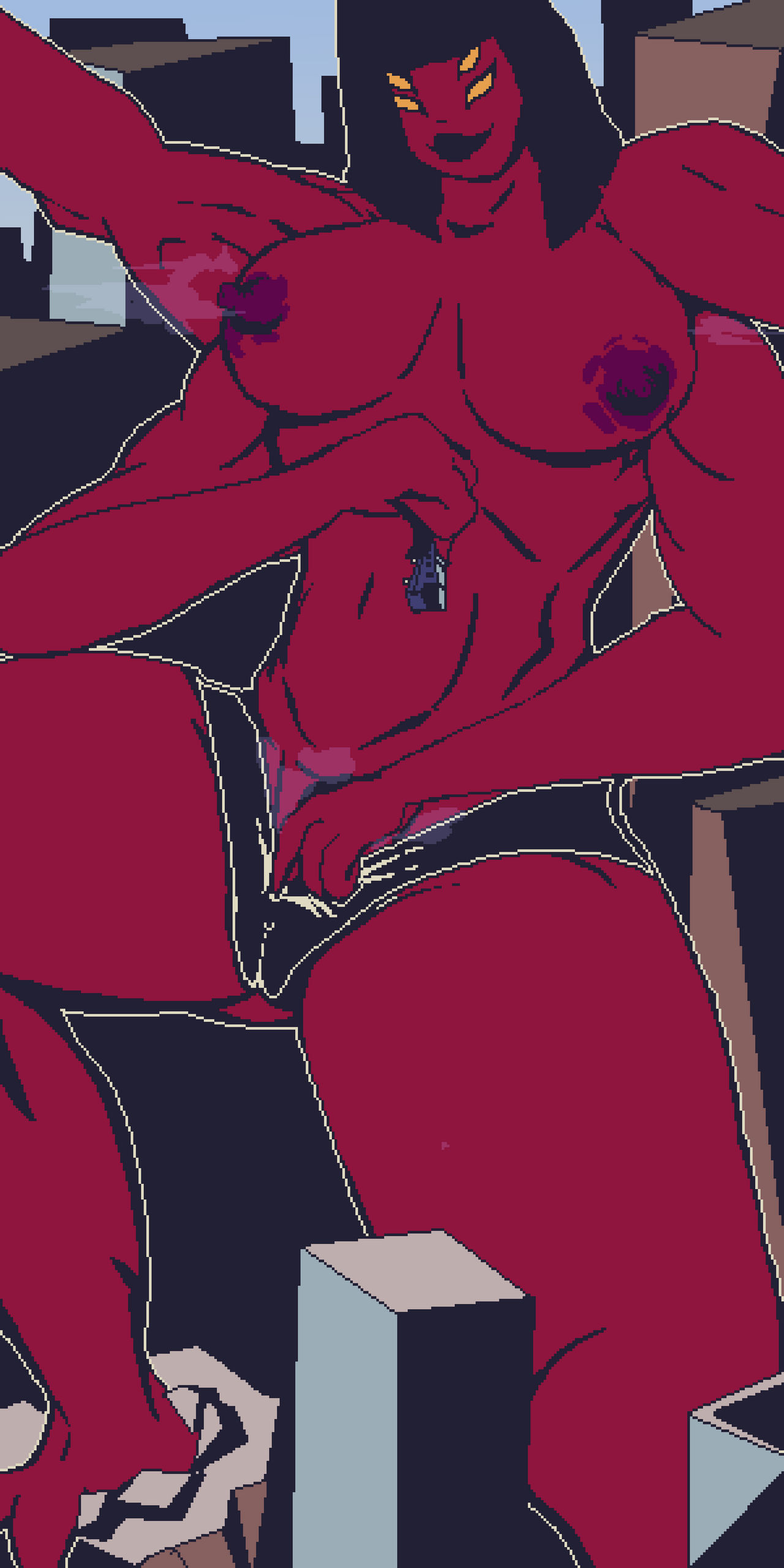 >Looma's lower pair of massive, blood red hands hands grip Ben's ass, tugging him up tight to her body.>Ben's face plasters between the twin swells of blood red breast as his own chest is ground against tight abdominal muscles that ripple as she laughs.>"Welcome to your Honeymoon, my husband...," she coos as she runs her upper set of hands through his hair, holding his face to her chest as she rocks her naked body atop him.>"Teeennysssoooon...">Attea's accent teased out right in Ben's ear as she pressed, naked, to his back. He could feel the spongey wetness, and slick smoothness of her skin as her arms wrap around his chest, fingers splaying and pressing herself against him.>"Perhaps I can convince you to go Bullfrag for me for a while if I show you what we Incurseans can do...">And then her thick tongue lashed out, rolling down his chest and wriggling into the front of his pants>"Ben...">Suddenly a naked, soft, elastic pink legs snake out, wrapping around him like a pair of serpents. Slowly drawing him back to the sprawling, naked body lying across the bed in the Kraaho Chieftan's hut.>"You look cold... let me keep you warm...">Her arms come up, wrapping around his shoulders as she pulls him down atop her, mouths meeting in sudden passion.