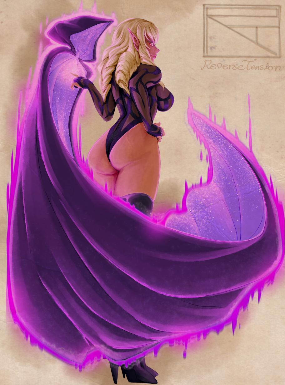 Nieve Ilao, a concept for a jaded prostitute with gender-flipping magic who used to be a Magical Girl but grew up and out of it and struggles to make ends meet. Never commissioned any more art other than this reference sheet, unfortunately.